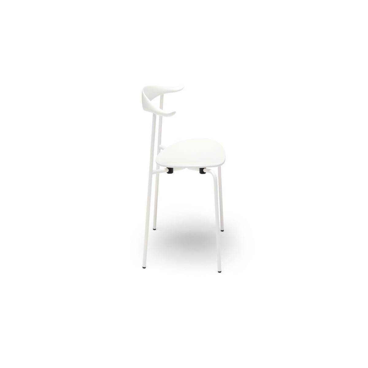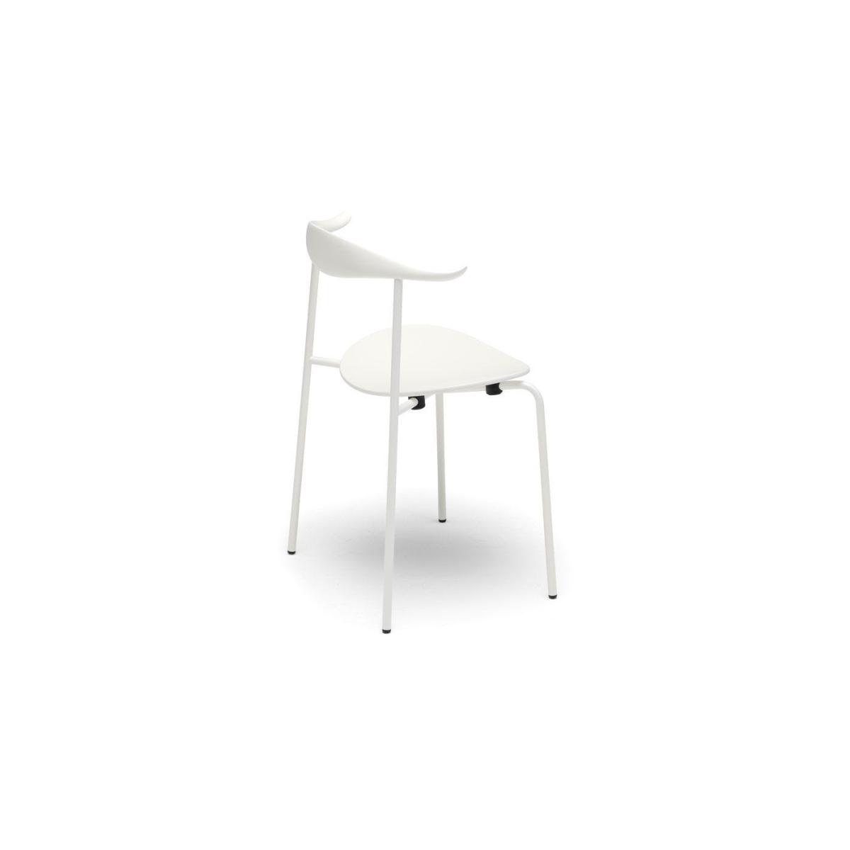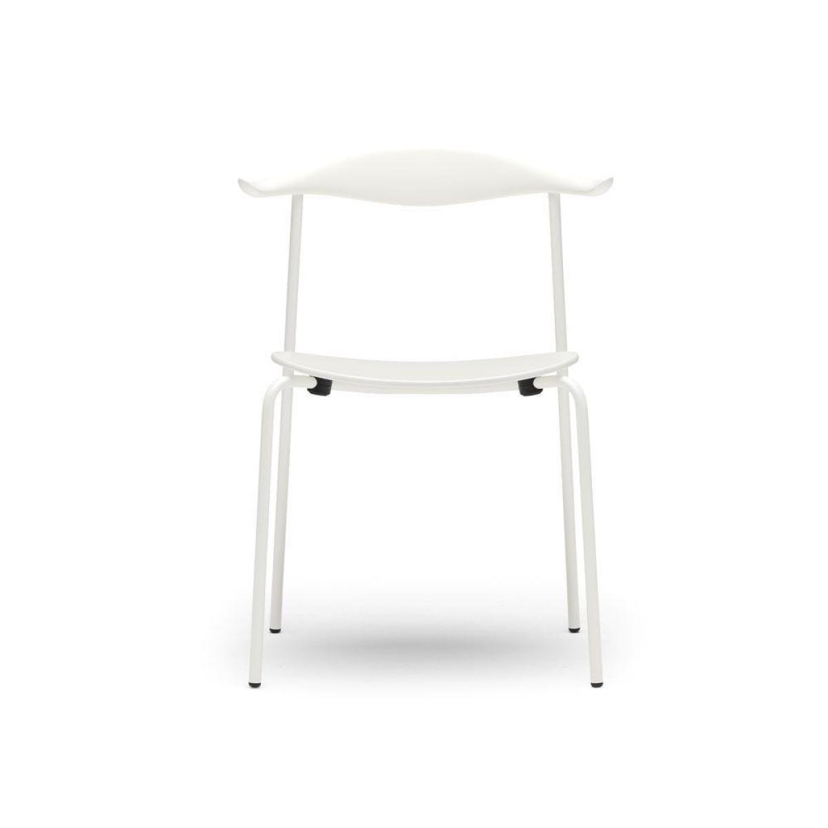 Although known for his work in wood throughout his career, Hans J. Wegner often explored the limits and potential of other materials. The CH88. T Dining Chair is one such example. The design was initially developed by Wegner as a prototype with coloured legs. It was displayed at the international Helsingborg Exhibition in Sweden in 1955. Decades later, Carl Hansen & Søn put the chair into production in celebration of the 2014 centennial of Wegner's birth. The CH88. T is versatile, elegant and functional. Its convenient stackable design seamlessly joins wood and industrial steel, showcasing Wegner's skill in lending softness to minimalist forms. The steel frame supports an oval wooden seat and steam-bent backrest with elegantly upturned ends forming a natural resting place for the forearms.