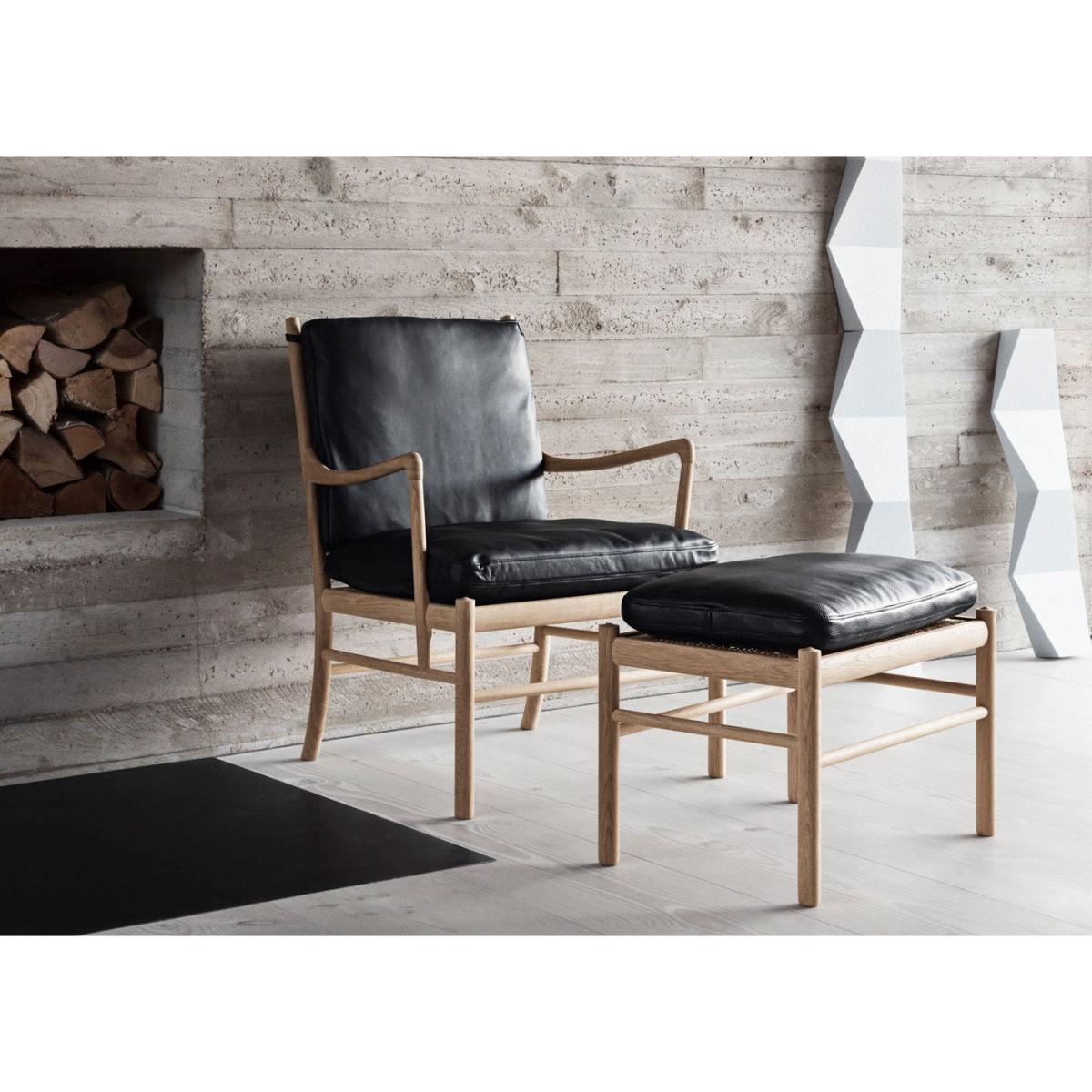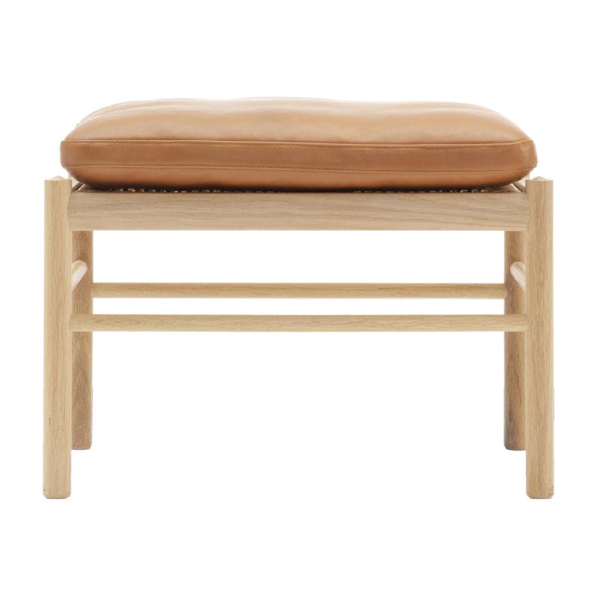 Carl Hansen & Son OW149F Colonial Footstool Soaped Oak Upholstered in Thor 307 - Heal's UK Furniture