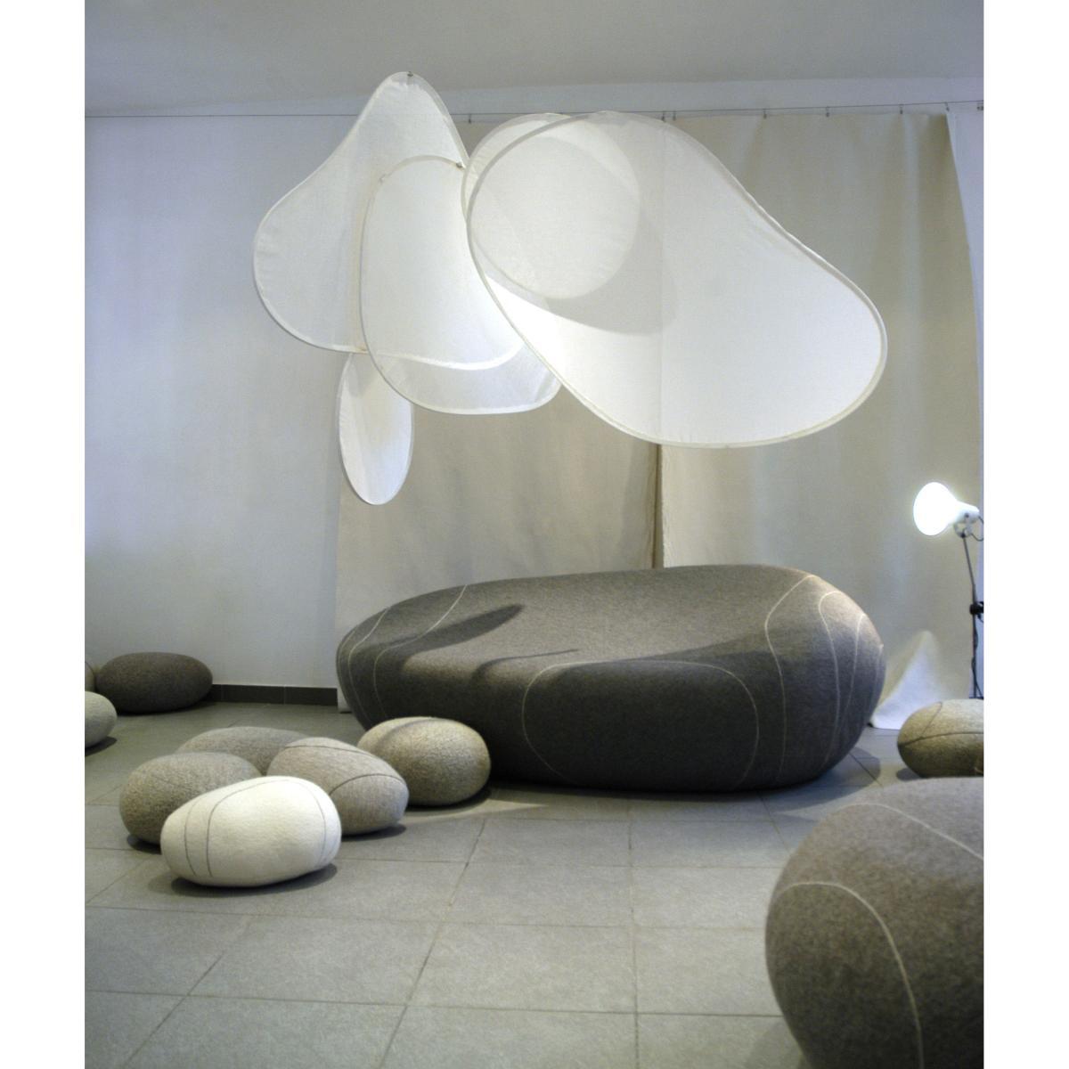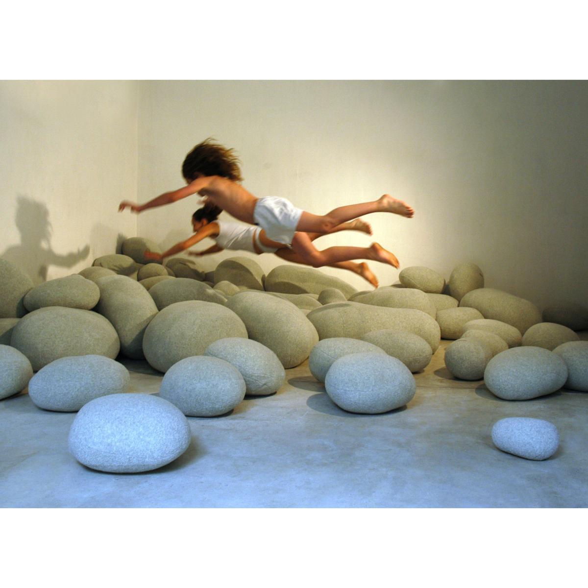 The collection Livingstones consists of a multitude of oversize pebbles (pillows, cushions, pouffes, mattresses) which allows you to create your own comfortable pebble beach in your lounge or garden! Transform your indoors or outdoors into an imaginary holiday landscape. Soft, comfortable giant pebbles which create a rest area that varies in size and shape. The wide choice of forms, dimensions and colours allows you to compose an intimate and poetic universe.