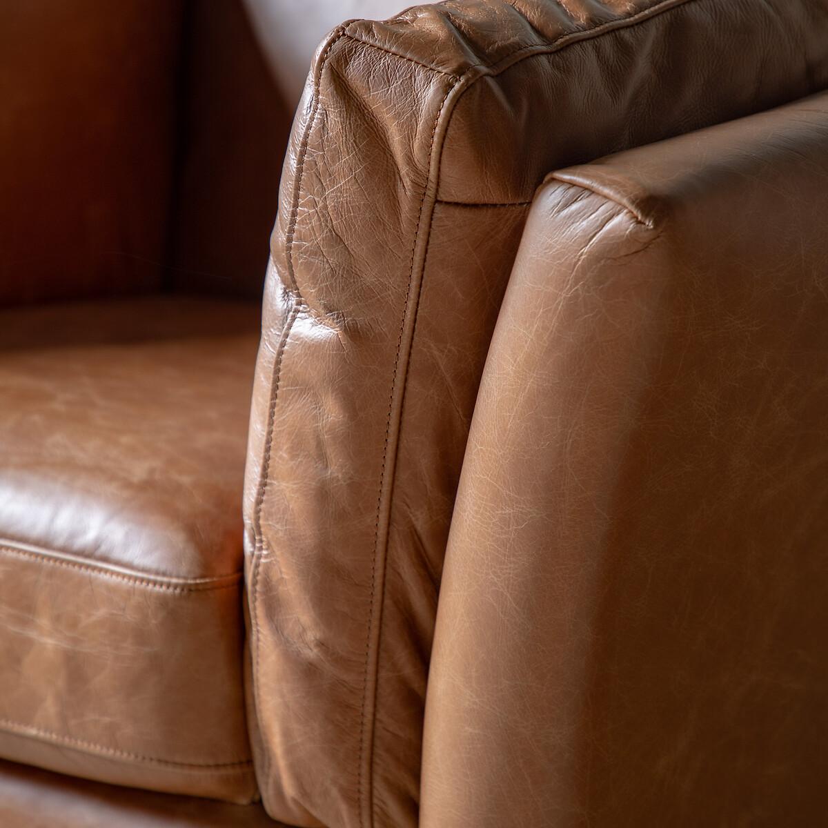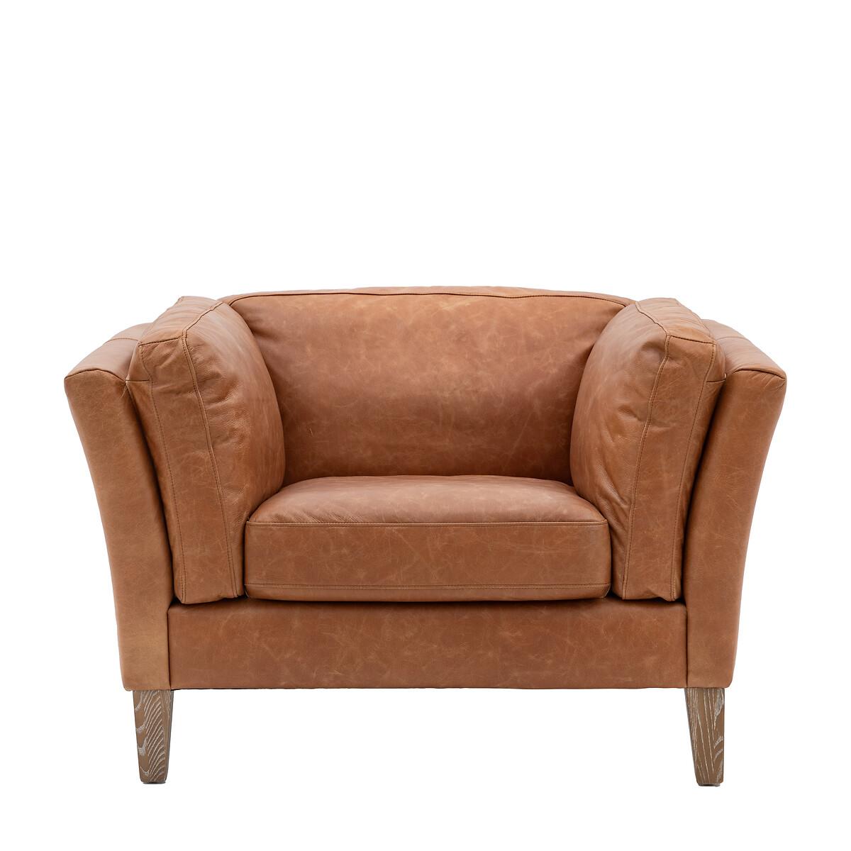 This stylish armchair is crafted in top-grain mellow brown vintage leather. Featuring solid ash legs and padded arms for enhanced comfort, this armchair brings both elegance and relaxation to any living space. Combining timeless design with premium materials, making it a perfect choice for those seeking lasting style and comfort. Product Details• Upholstered in vintage leather• Ash wood frame• Seat fillings - Foam• Back fillings - Foam• Medium level of comfort• Delivered fully assembled• Care advice - Wipe clean with a soft cloth• 12 months manufacturers warranty. Product Composition - Ash / Fibre / Foam / Leather. Product Dimensions - 105 cm x 90 cm x 69 cm, Weight - 27.8 KG Seat Height from floor - 44.5 cm. Seat Width - 53 cm. Seat Depth - 54 cm Clearance to floor - 15 cm Package Dimensions - 108 cm x 93 cm x 56 cm, Weight 34.2 KG This product will be dispatched by one of our trusted suppliers. You’ll be contacted by their selected courier about your delivery. Please note: this product cannot be delivered to all Offshore Islands, Northern Ireland or Republic of Ireland.
