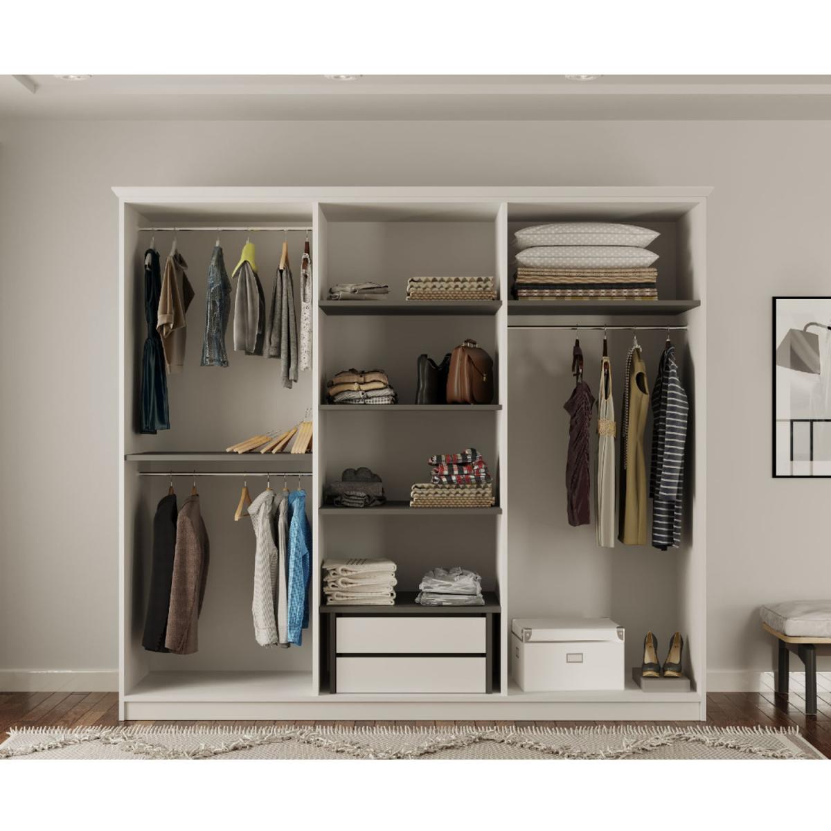 The perfect storage solution, the CARLOS range will add elegance, style and incredible practicality to any modern room. A great example of Italian inspired design, this wardrobe boasts a contrasting grey-white finish, mirrored panels that create an instant feeling of light and space, as well as plenty of storage space to store your clothes and accessories. Material Membrane coated MDF board, finished with CNC process. Glass mirror. Dimensions Width210cm,Height210cm,Depth52cm. Delivered flat packed in 7x Boxes. Total Gross Weight186.8kg.!!!IMPORTANT INFORMATION!! Due to the size and the weight of this item, it is shipped out flat packed with 2MA N White Glove Guaranteeed Next Day Delivery Service to your room of choice with PANTHER logistics. After placing your order you can book your delivery by following the email instructions from PANTHER Logistics. !! Once the item is dispatched from our warehouse , cancelation or change of delivery date is subject to 50 charge!! Please note that items can not be left in a safe place or with a neighbour. If you are not happy with this service please let us know before item is dispatched and we will send your item with a standard 2man 7-10 days delivery service instead of next day service.