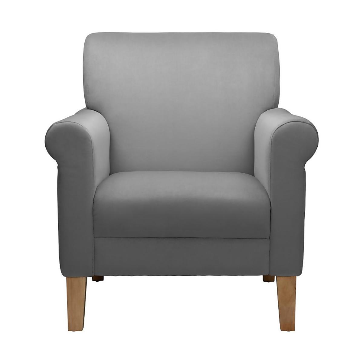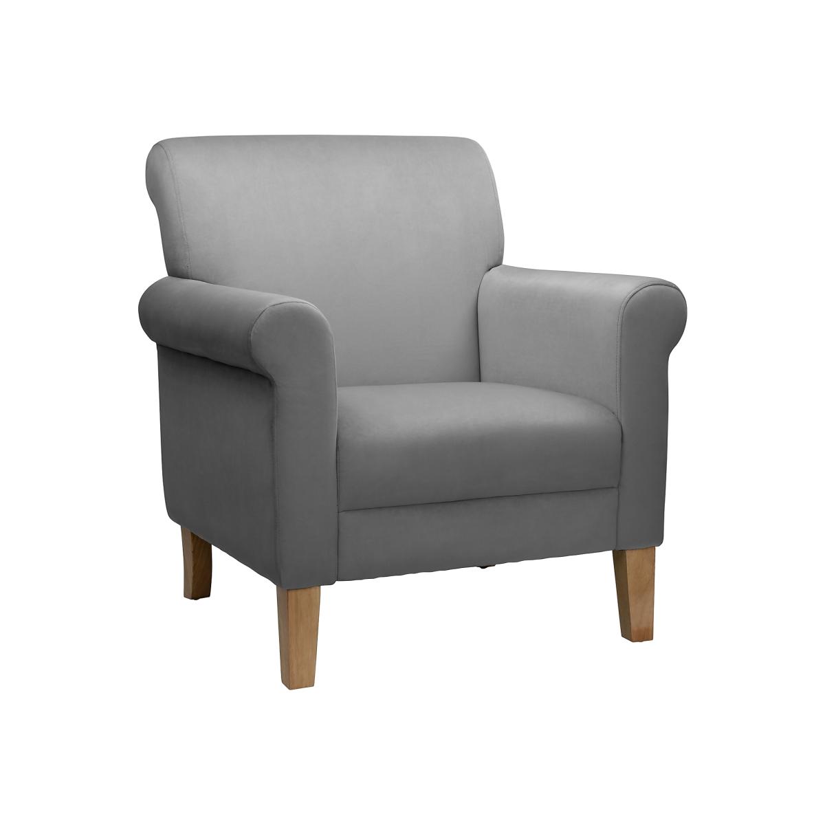 Get cosy with Carlotta. As charming as our Carlotta is comfortable, this armchair has gently scrolled armrests and back for that classic shape. With sturdy solid wood legs and soft touch, grey velvet upholstery, Carlotta is the perfect chair to curl up in with a good book.