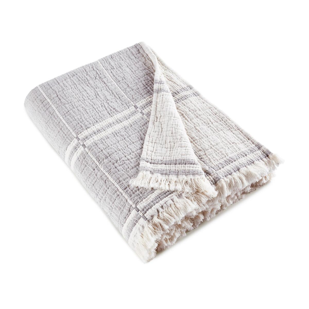 The reversible Carlotta throw boasts contrasting check patterns and the embossed effect of cotton muslin.