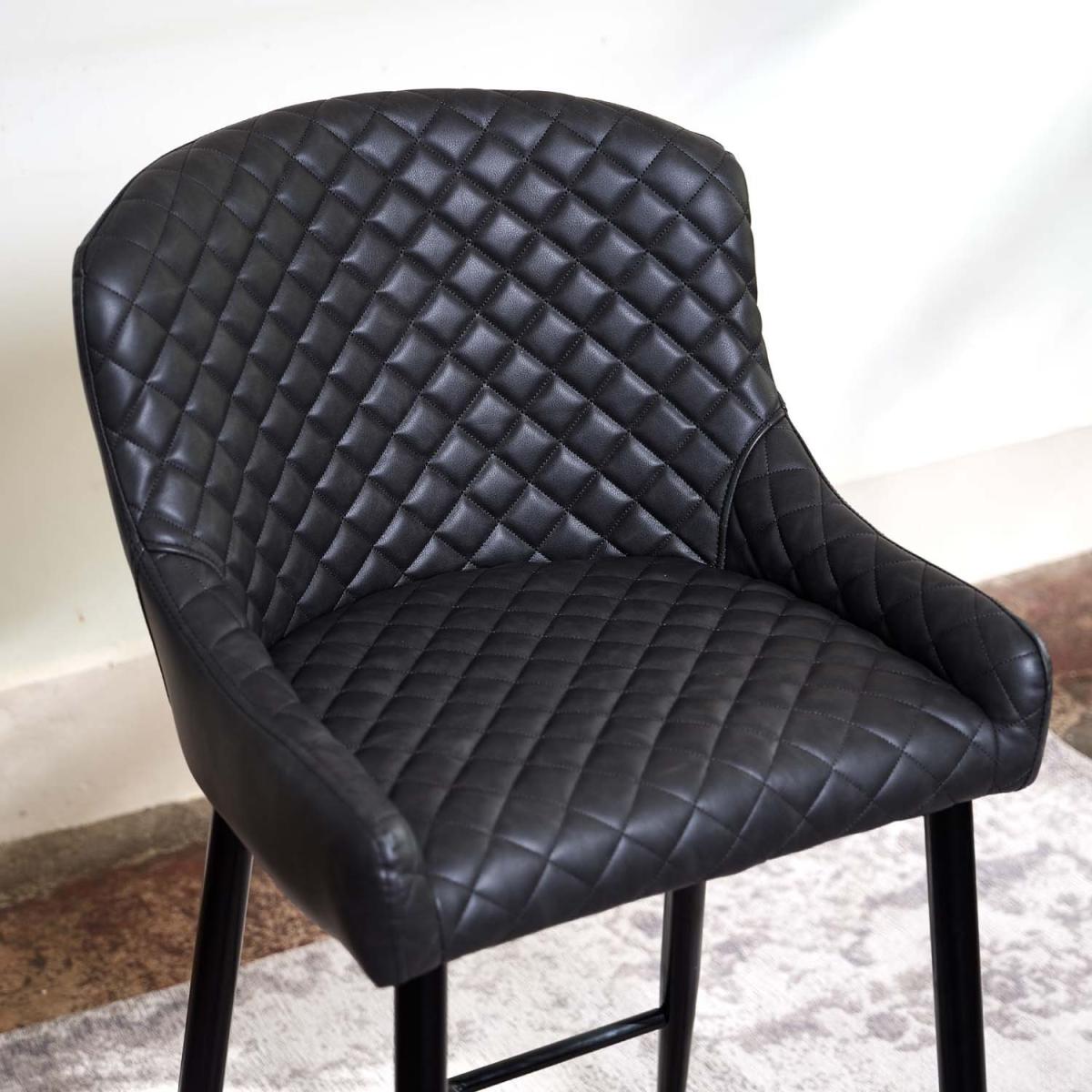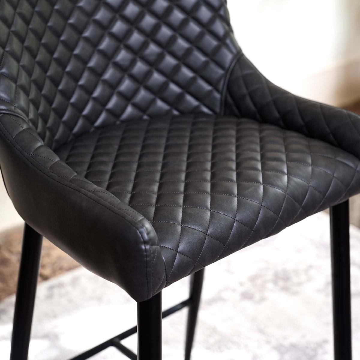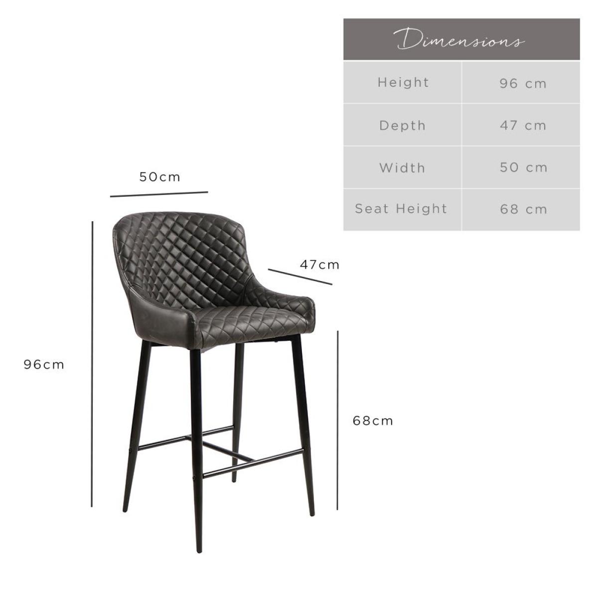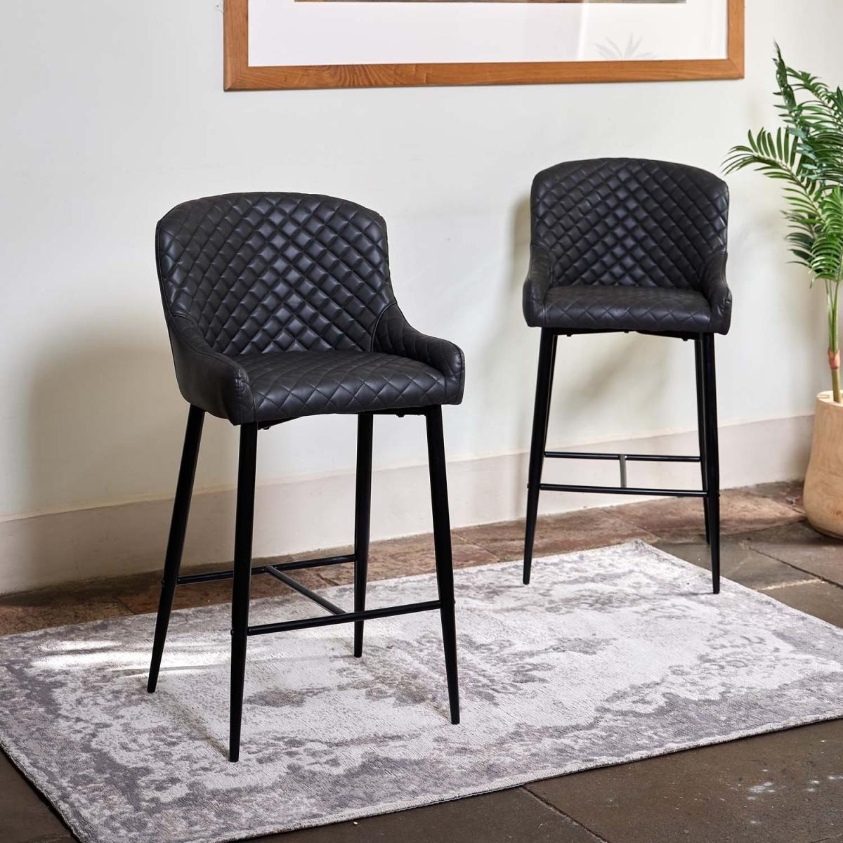 Upholstered in a faux leather material, this pair of bar stools are the ultimate addition to a modern kitchen. Available in tan and grey colours, these stools have matching dining chairs to complete the full dining room look. The diamond stitch detail combines the contemporary shape & material with a traditional pattern.