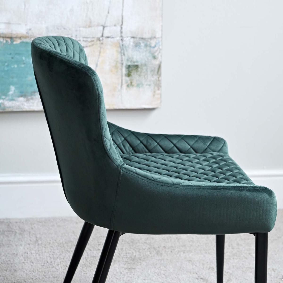The Carlton dining chair is a classic design that works both in traditional, and modern, home styles. Upholstered in a soft velvet, this dining chair combines style, featuring a beautiful diamond stitch, without compromising comfort.