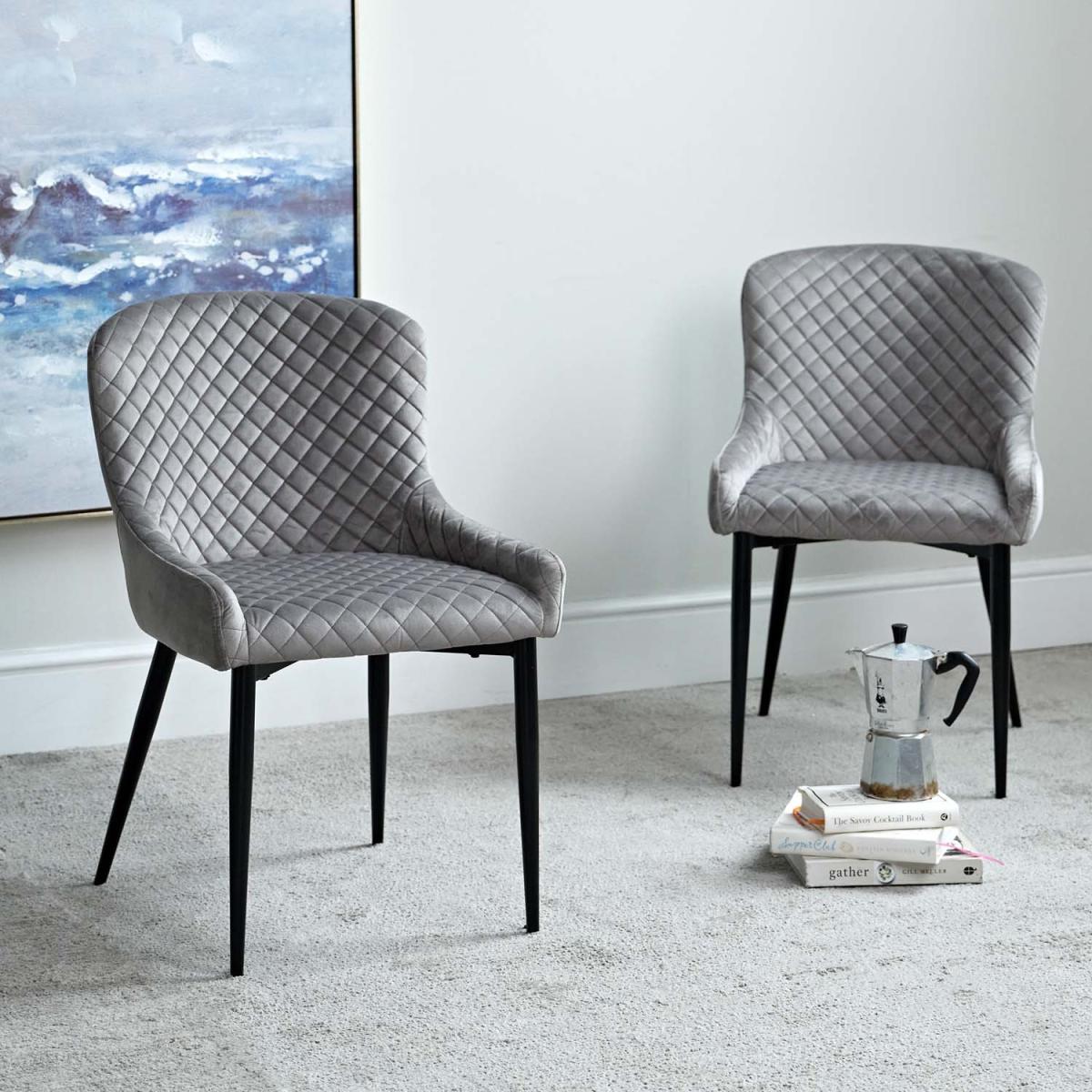 Carlton Dining Chair - Light Grey Velvet Set of 2