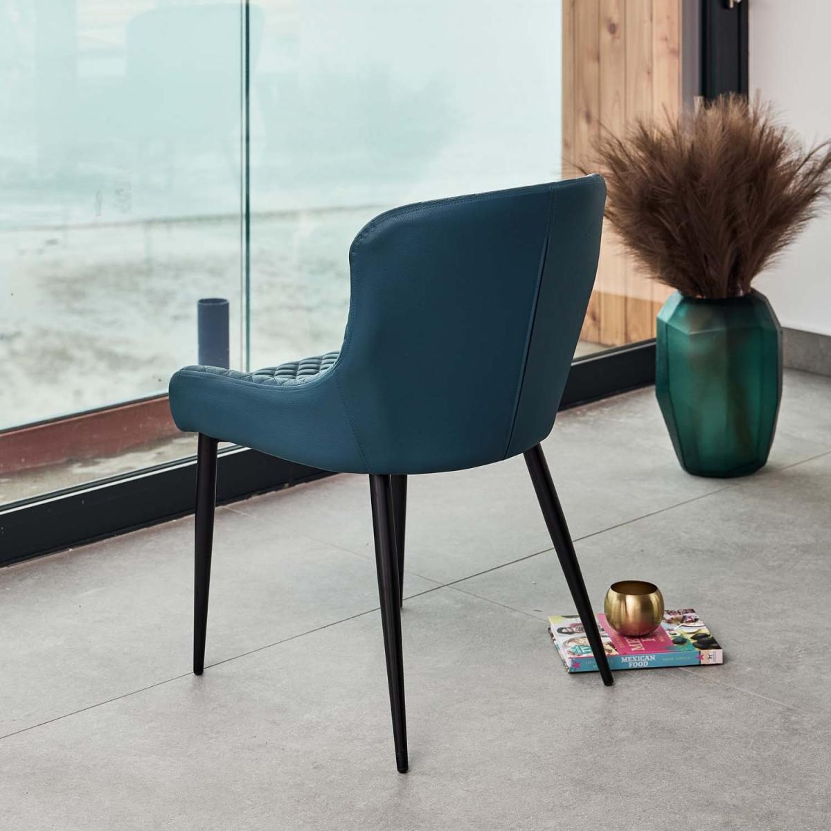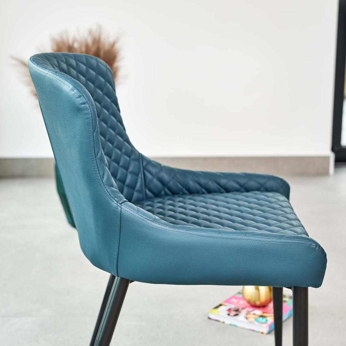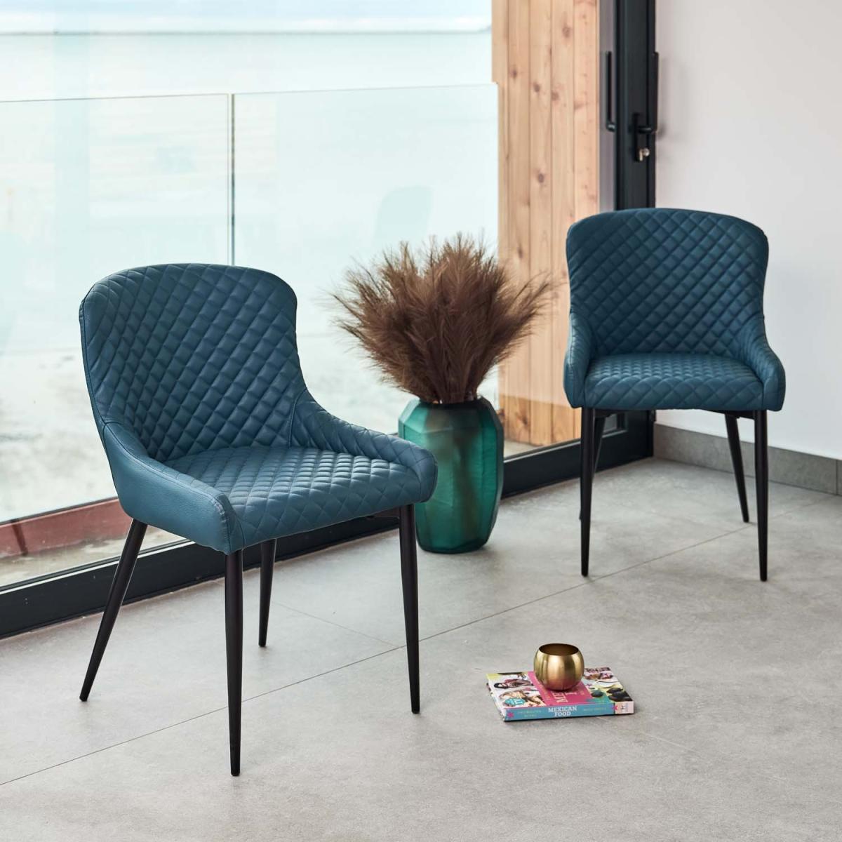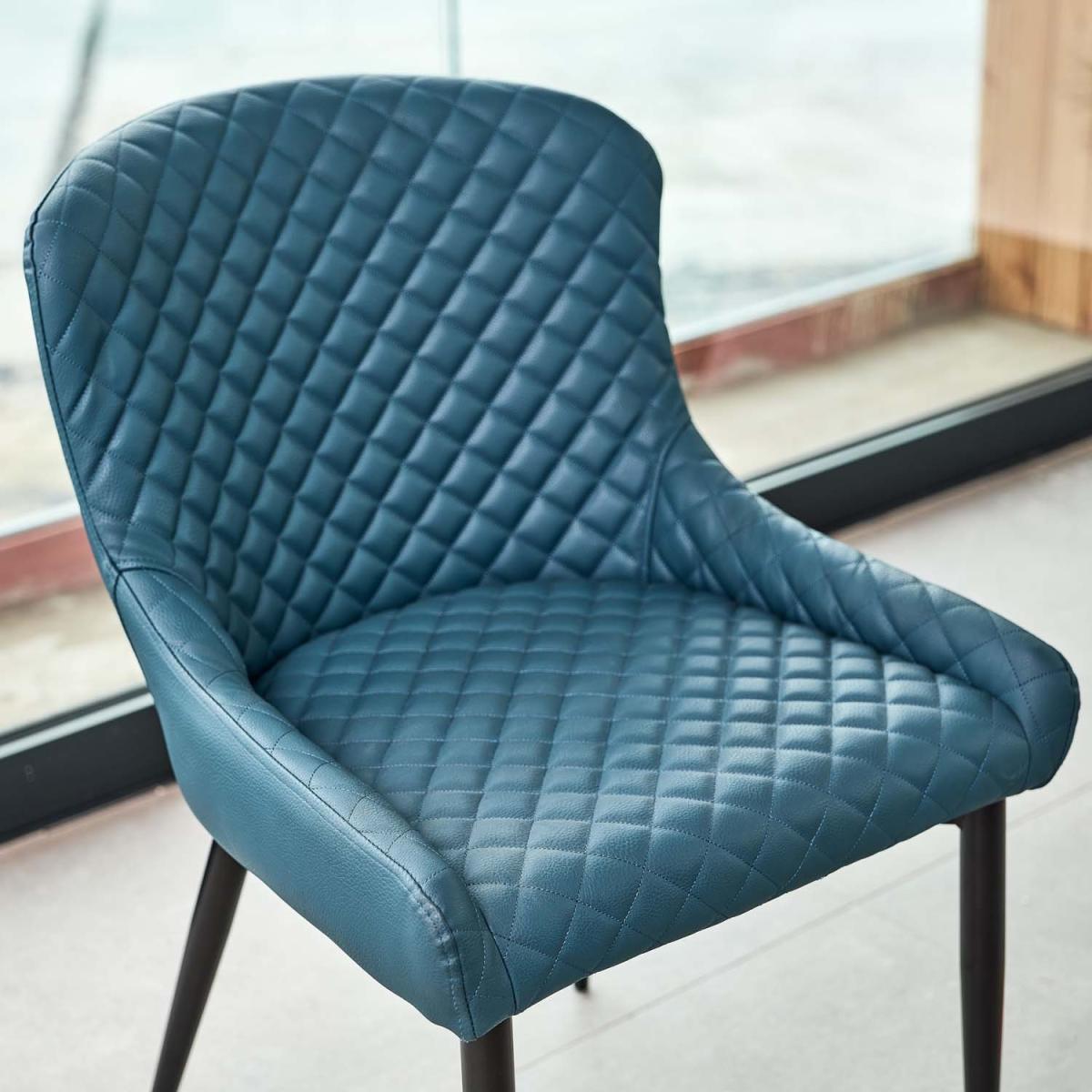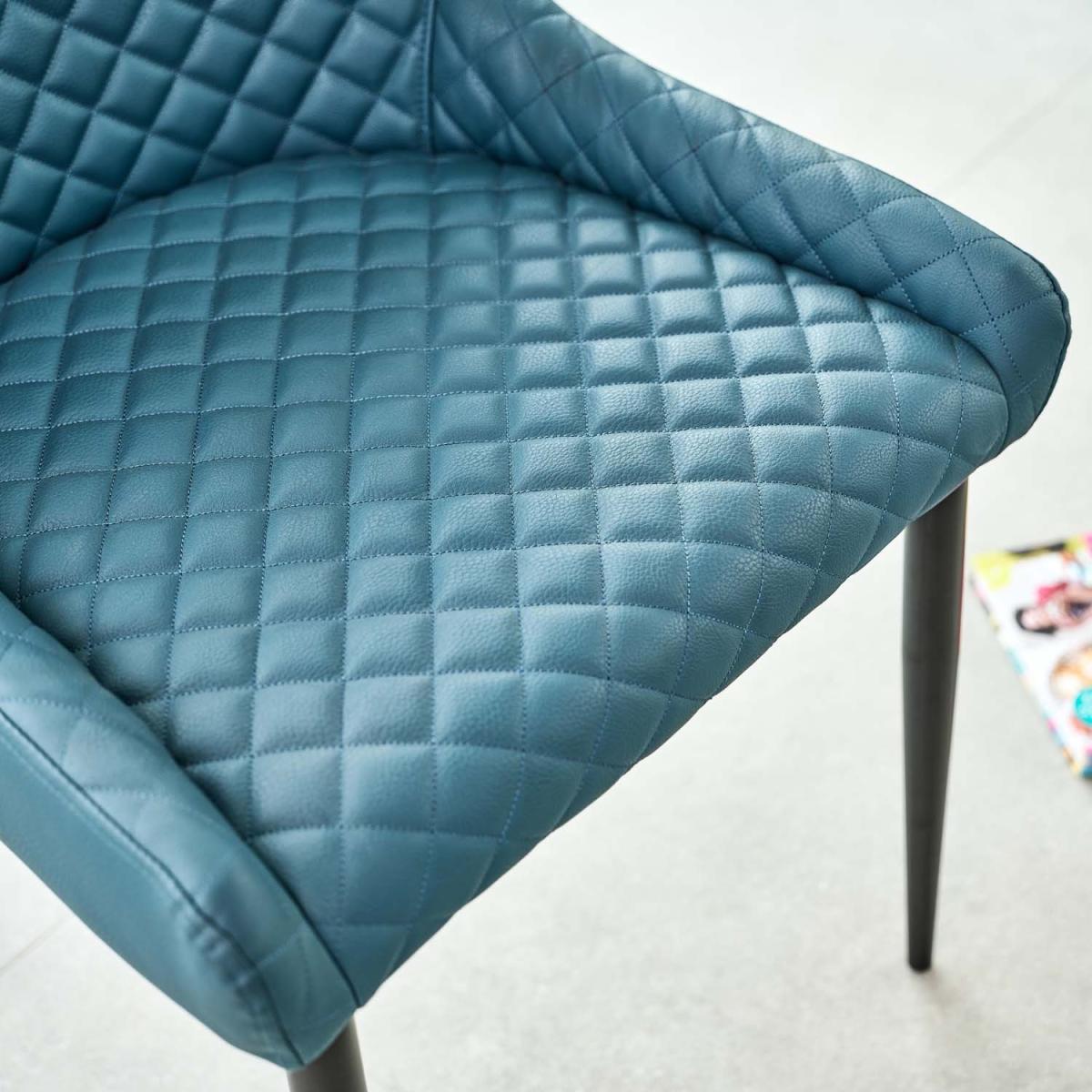 The Carlton dining chair gives a modern twist on a classic style. This seating option combines a diamond quilted back and seat with sleek matte black coated metal legs in order to create a fusion of traditional and contemporary styles. The perfect level of support and comfort comes from their curved backs, and, thanks to the pop of colour through the teal upholstery, these dining chairs are a chic addition to any dining room setting.