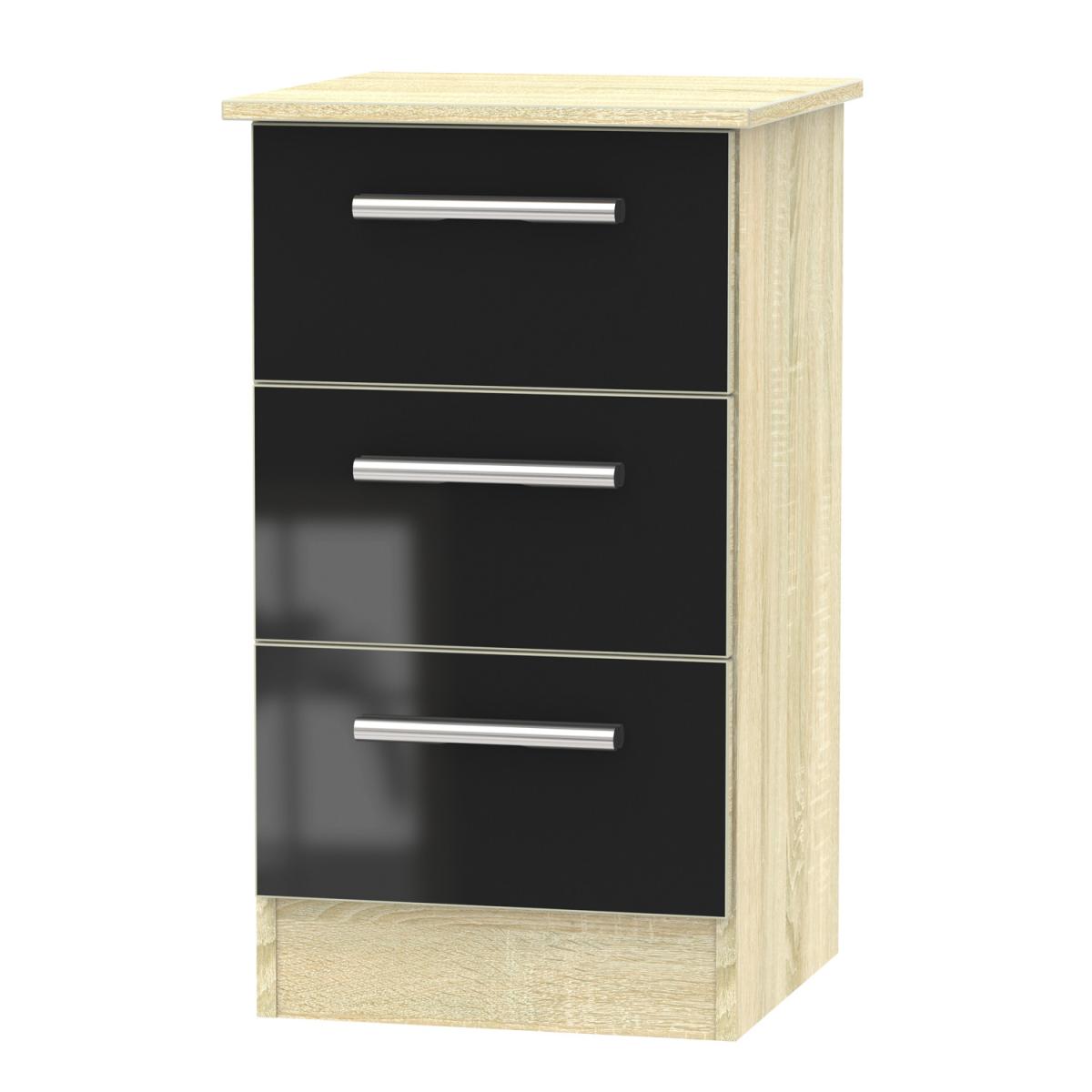 A stylish piece for your bedroom, this Carlton Three Drawer Bedside Table is the perfect piece for next to your bed. Great for holding a lamp or alarm clock, this bedside table features a sleek design with three spacious drawers. The ideal location for storing books and other miscellaneous items, this bedside table is both a fashionable and practical piece for your room.