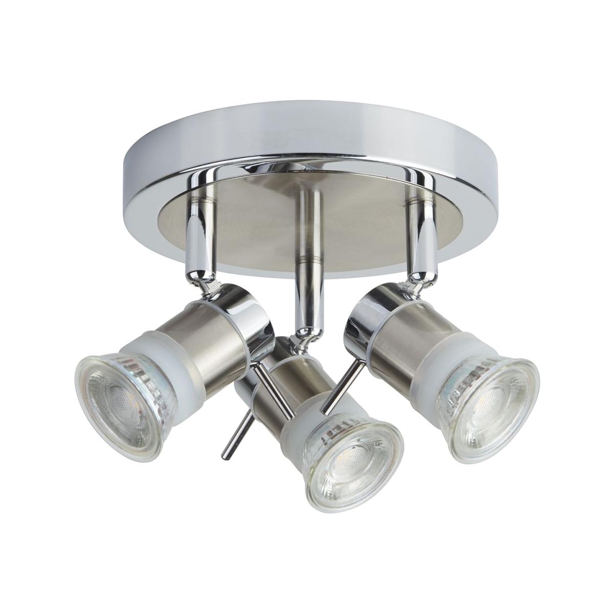 This chrome and satin silver 3 light spotlight is ideal for lighting your kitchen, bathroom or any other room in your home. The chrome and satin silver finish creates a clean, modern look for any ceiling, and the angle of the lights can be adjusted to create the perfect lighting effect. The ceiling spotlight is IP44 rated and fully splash-proof. Complete with IP44 LED lamps. LED's use up to 75 less energy and last up to 20 times longer than incandescent bulbs.