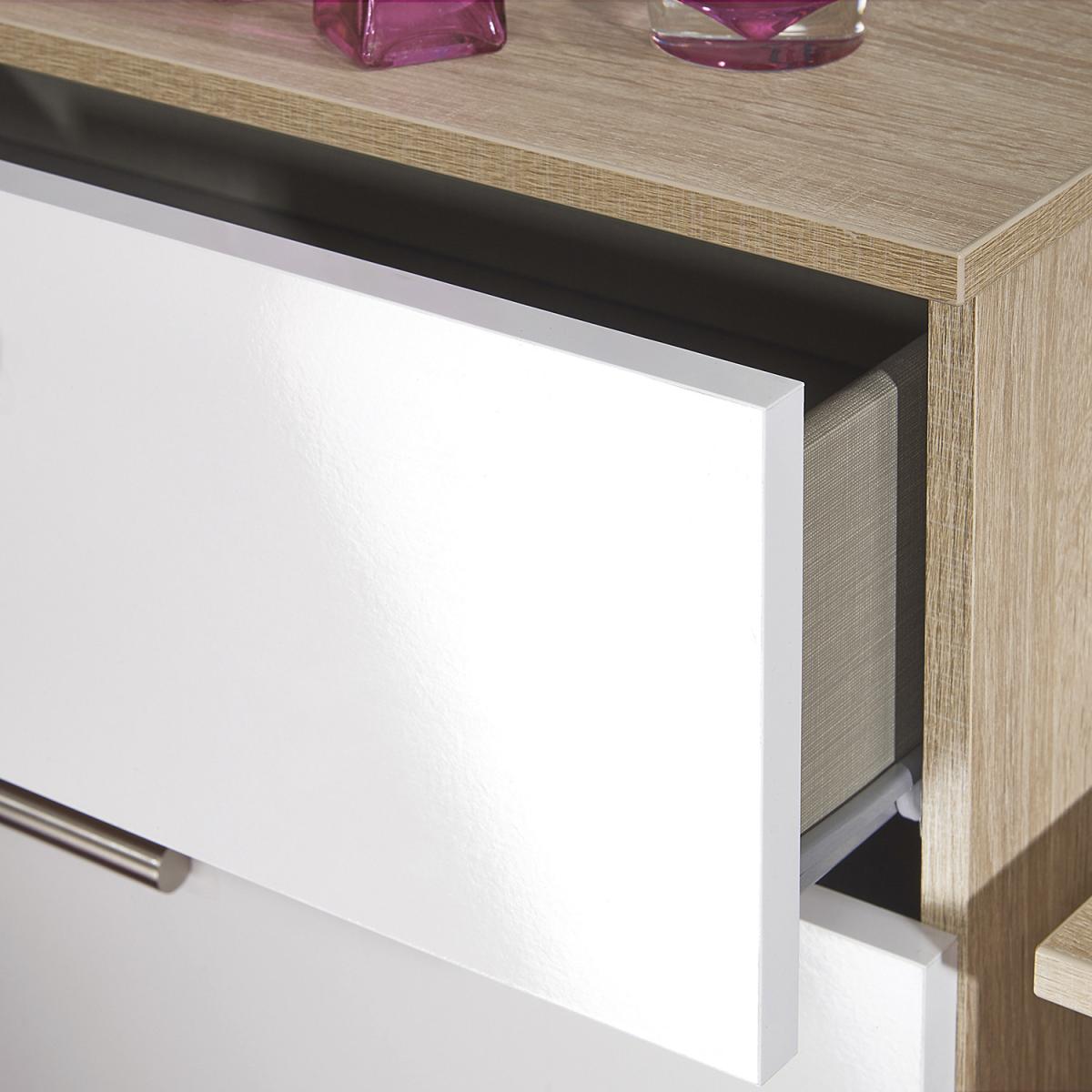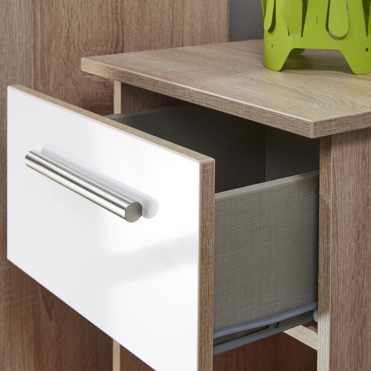 I’m a fan of this vanity desk and stool for its neat, space-saving design and the mix of white gloss drawers with oak-effect surfaces - it feels fresh without being fussy. It works particularly well in modern Scandi, minimal or transitional bedrooms, where its clean lines won’t compete with bolder accents. For styling, tuck a simple round mirror on the back edge, add a small tray to corral jewellery or makeup brushes, and keep a slim LED lamp at hand. If you need more organisation, clear acrylic boxes on top of the drawers keep bits visible but tidy, while a neutral cushion on the stool ties everything together.