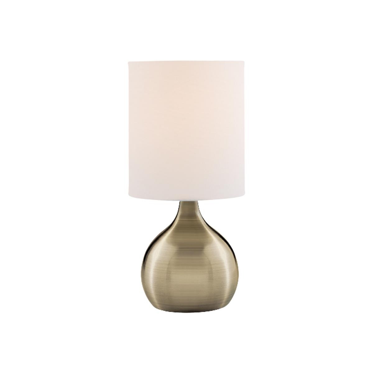 The touch table lamp is perfect for lighting any bedroom, living room or dining room with three light settings (low, medium and high). The lamp is compact yet stylish with a sleek antique brass finish funnel base and white tall fabric drum shade.
