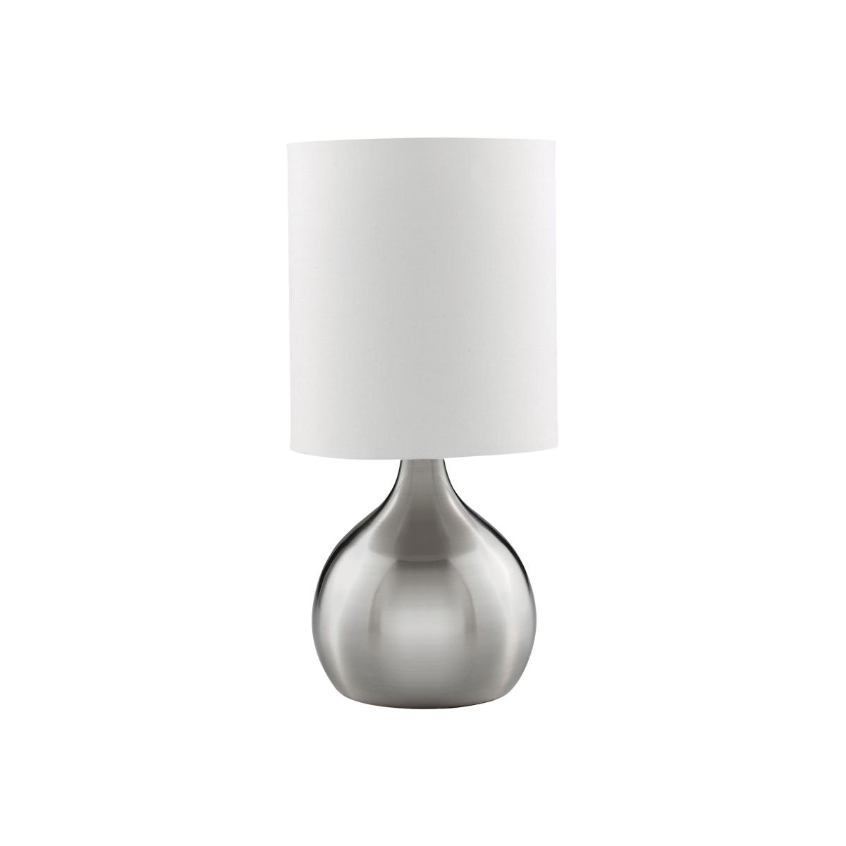 The touch table lamp is perfect for lighting any room with three light settings to help create your perfect environment. The lamp is compact yet stylish with a sleek satin silver funnel base and white tall fabric shade.