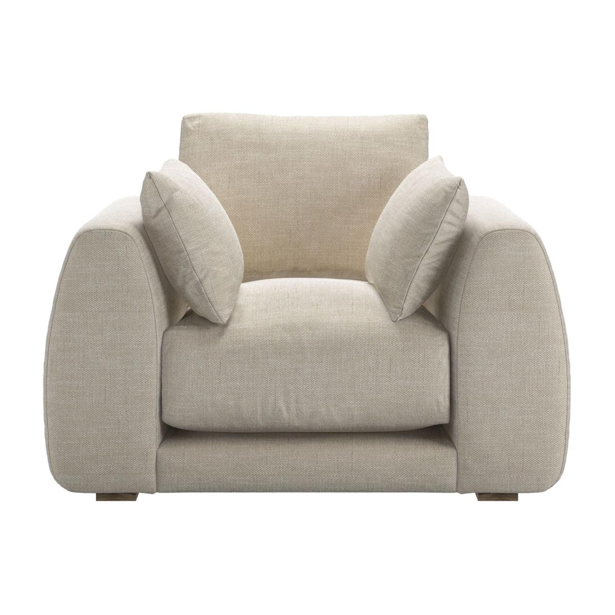 I love this armchair for its versatile silhouette and sophisticated fabric choice. The Jasmine Silky Jacquard weave adds a subtle sheen and texture that elevates both contemporary and classic interiors. It works particularly well in neutral-toned, minimalist, or boutique-style schemes where its understated elegance can stand out without overpowering the space. Practical styling tips include pairing it with cosy throws and decorative cushions in contrasting textures or colours to create a layered, inviting look. Its substantial form makes it a statement piece in a living room setup or even a luxurious reading nook, and its neutral palette lends itself well to both soft pastel accents and bold colour contrasts.