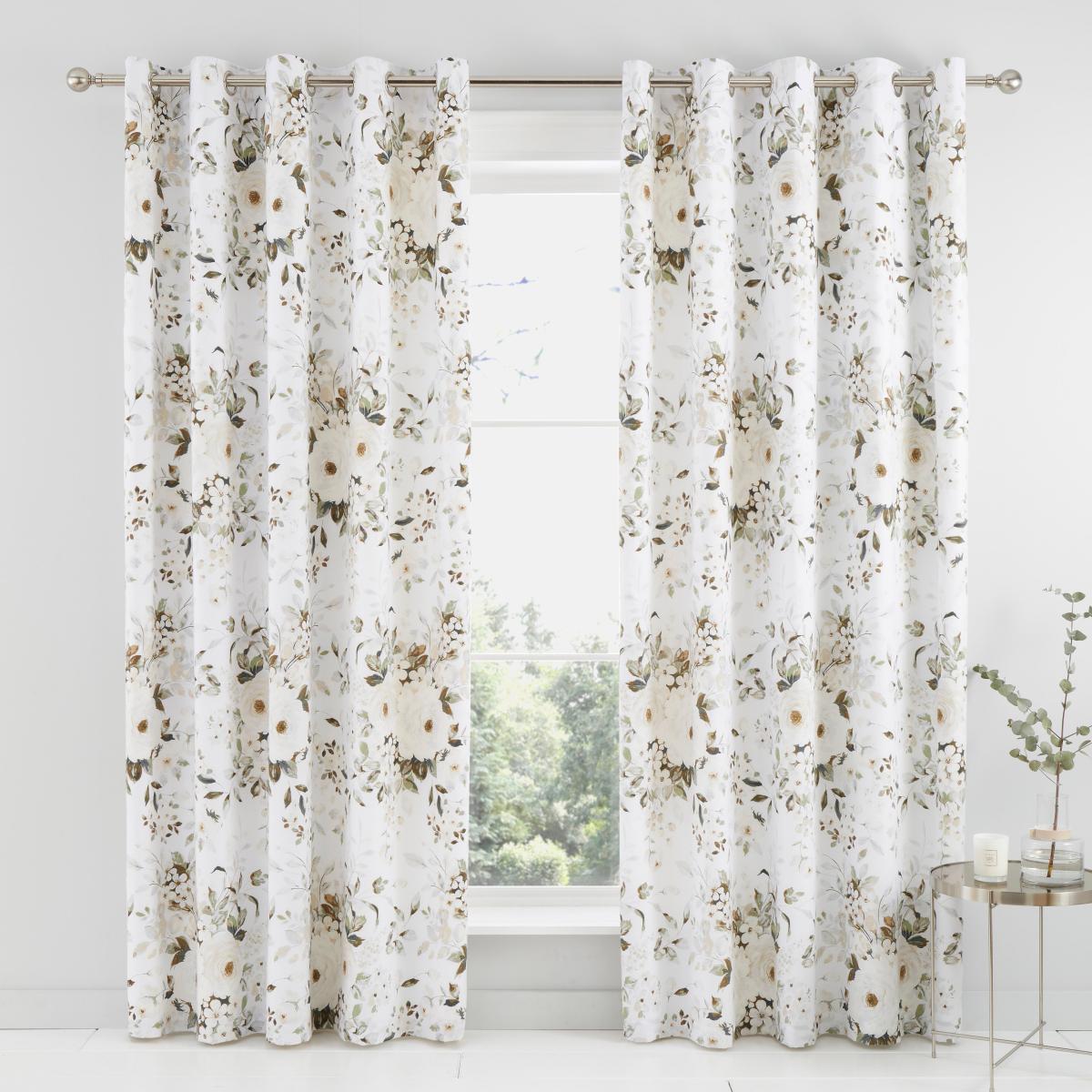 To ensure a better night sleep, the Carmel White printed curtains have been made from soft and durable polycotton on a stunning floral print in an eyelet header style for easy and simple attaching. The convenient blackout lining minimises unwanted light, providing you with an uninterrupted and peaceful night sleep. Good things come to those who coordinate, so why not pair these eyelet curtains with the matching Carmel bedding available to purchase separately?. MADE IN GREEN by OEKO-TEX® is a unique product label to trace the countries and production facilities - search the product label for more information.
