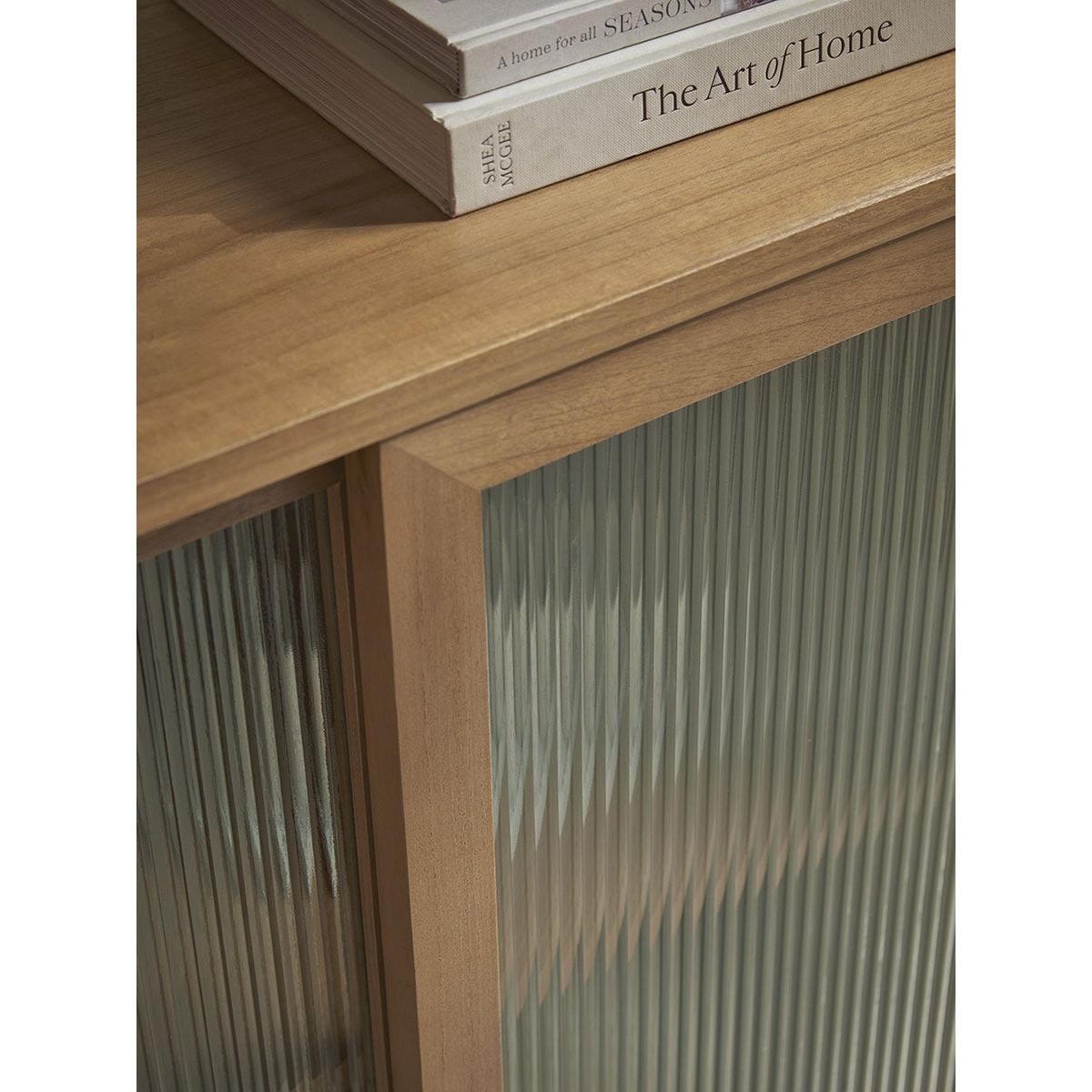 For a simple and minimalist design in your home, our Carmela Display Cabinet offers a stylish solution to storage. The warm Mindi wood frame is softened by glass sliding doors that conceals a shelf for ample storage space. The fluted glass slightly blurs what is behind them, creating a elegant place to store your belongings.