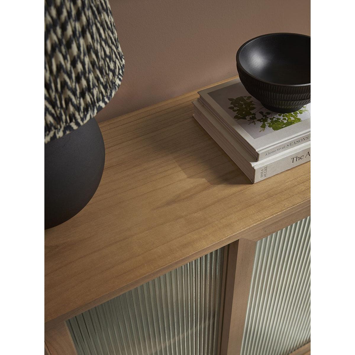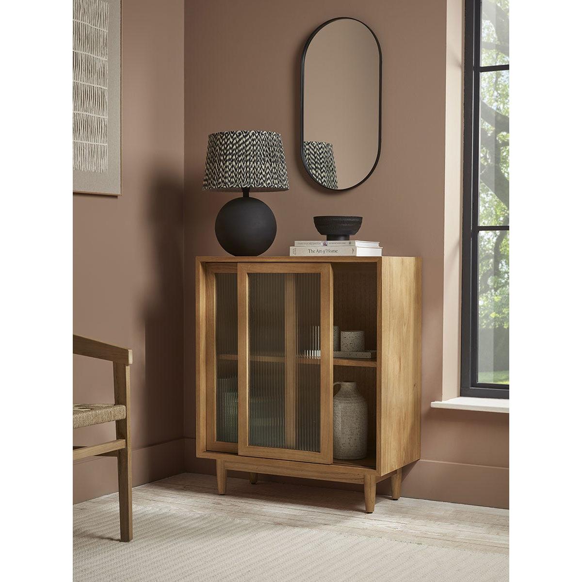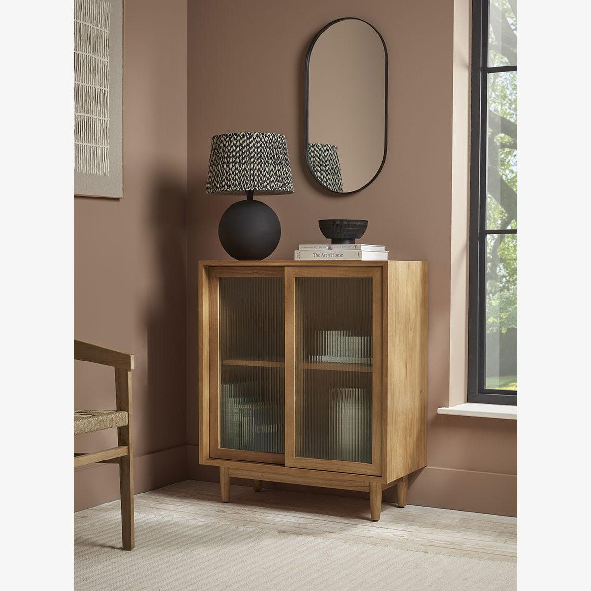 I’m fond of the Carmela cabinet’s warm oak tones and fluted glass doors - its clean lines suit mid-century, Scandi or contemporary schemes and its compact footprint is ideal for a snug living room or hallway. Styling-wise, arrange a few ceramics or glassware pieces inside so their shapes show through the ribbed glass, then top with a statement lamp and a neat stack of coffee-table books to add height. Keep surrounding colours muted and introduce natural fibres (a wool rug or linen cushion) to let the wood grain really sing.