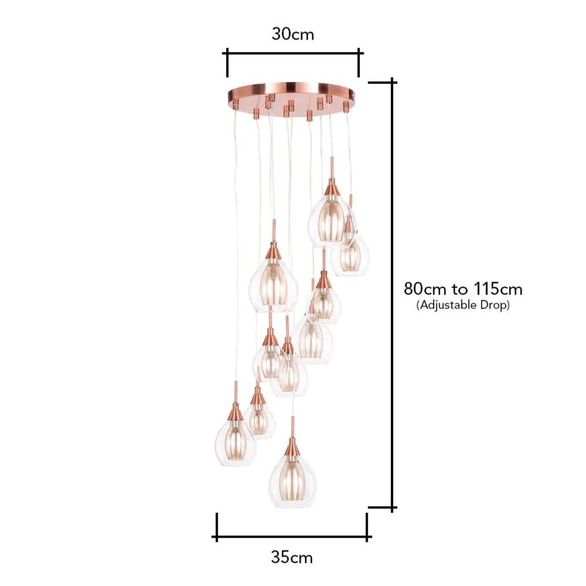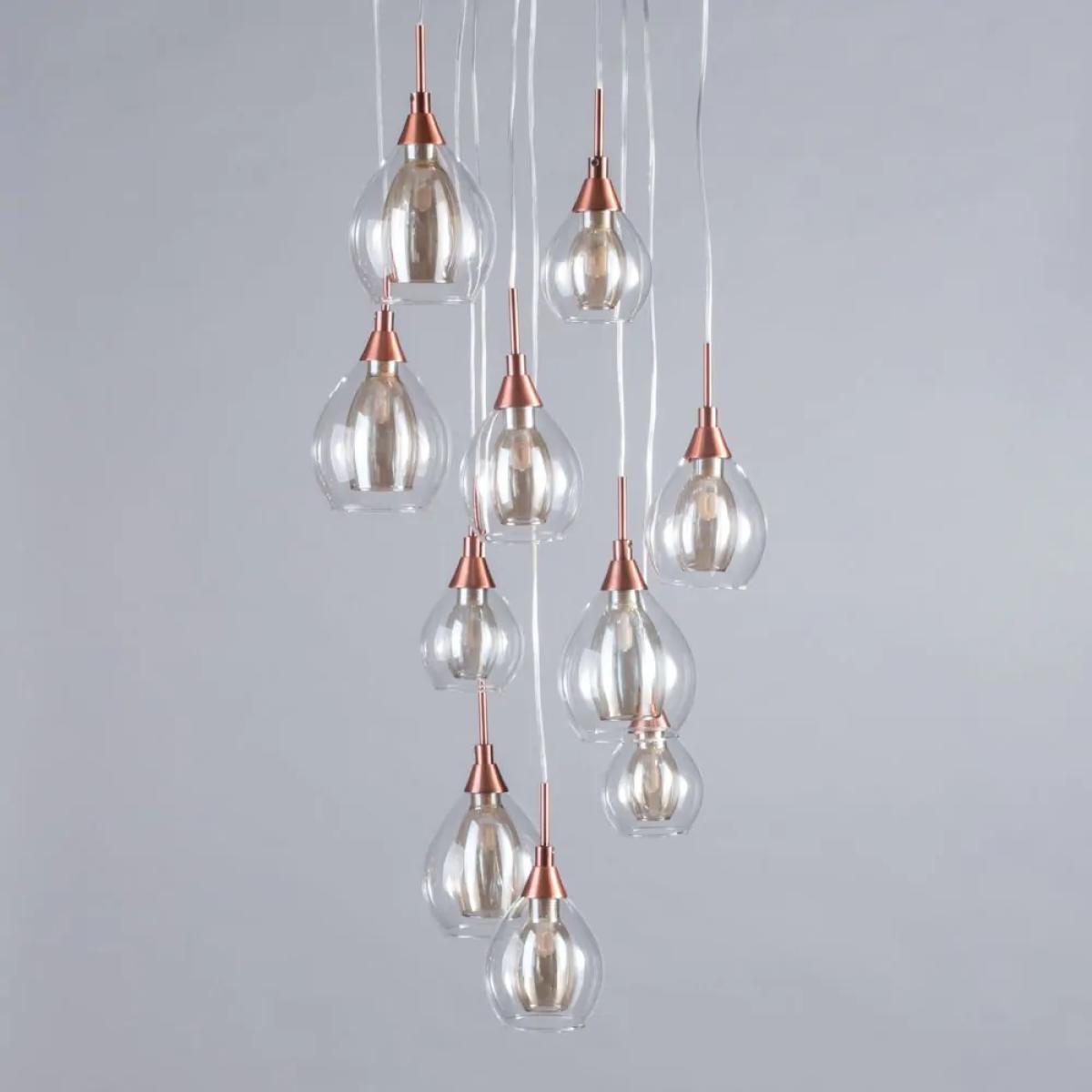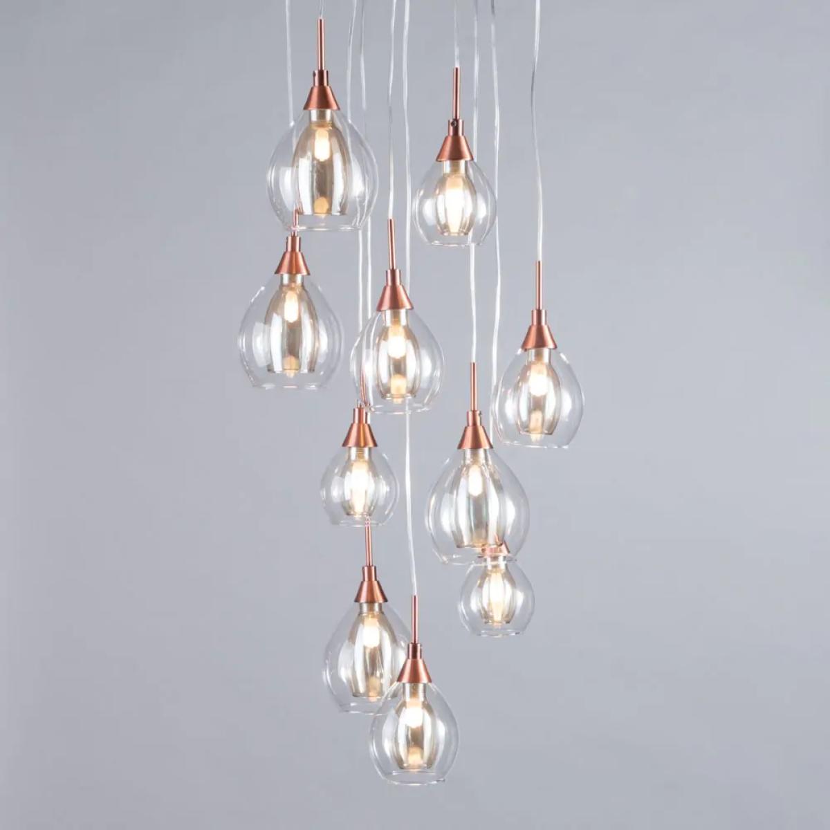 Cluster pendant lights are perhaps the boldest, most eye-catching light fittings available to bring into your home, giving a great light and statement style to any space that they’re featured within. The Carmella 10 light cluster is a fantastic example of how simple design can sometimes be the perfect way to decorate a space, with the elegant double glass shades and modern copper finish combining to give a sophisticated look to your living room, dining room, or staircase.