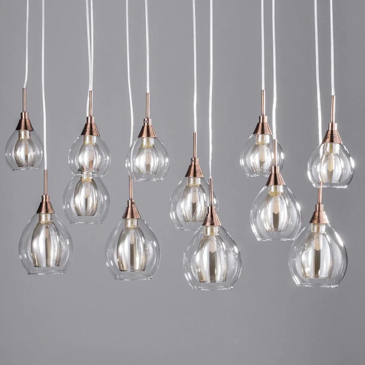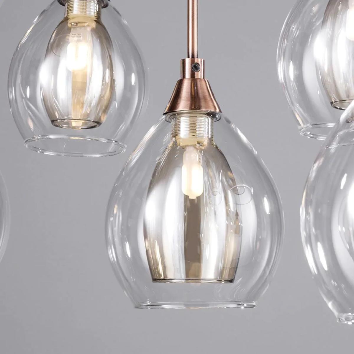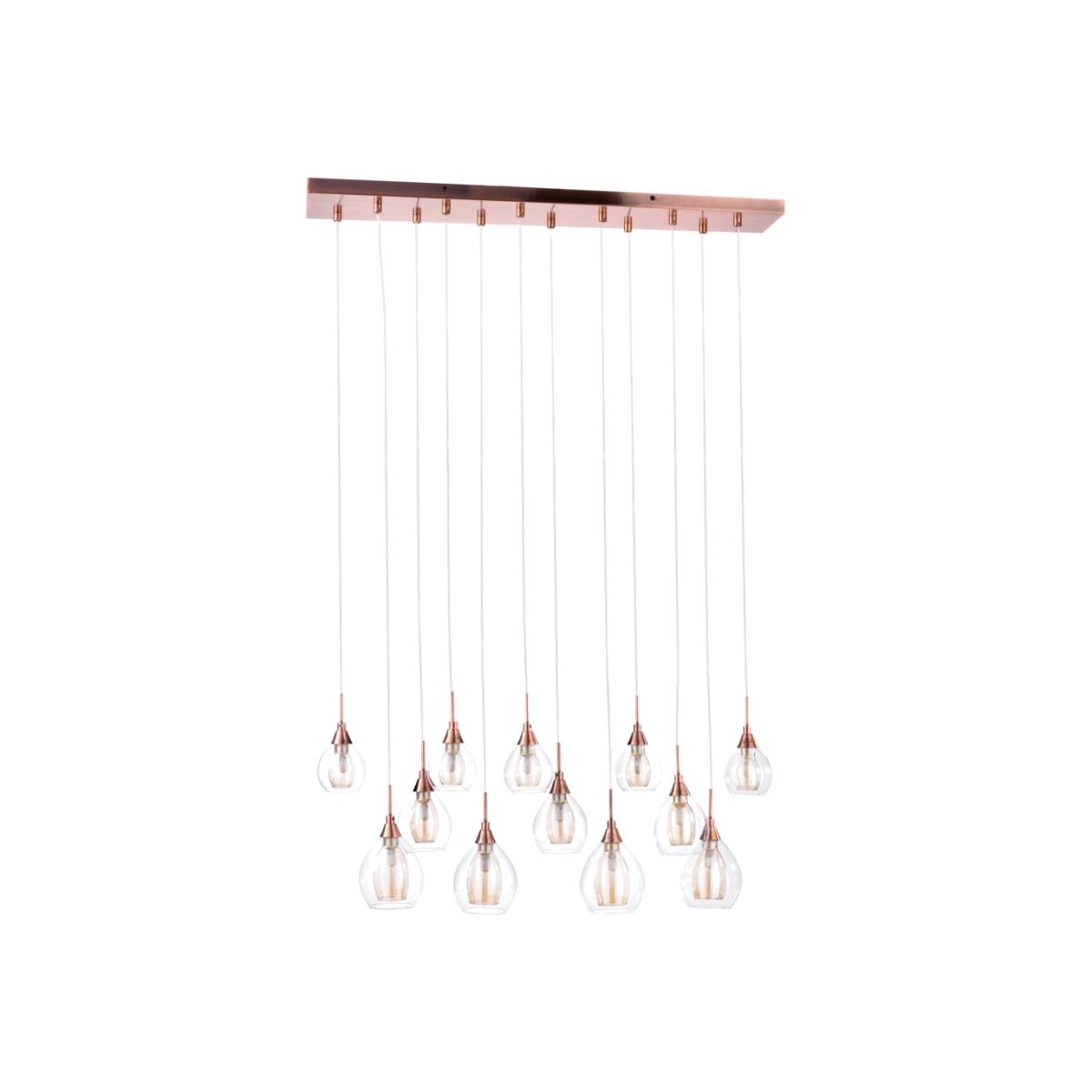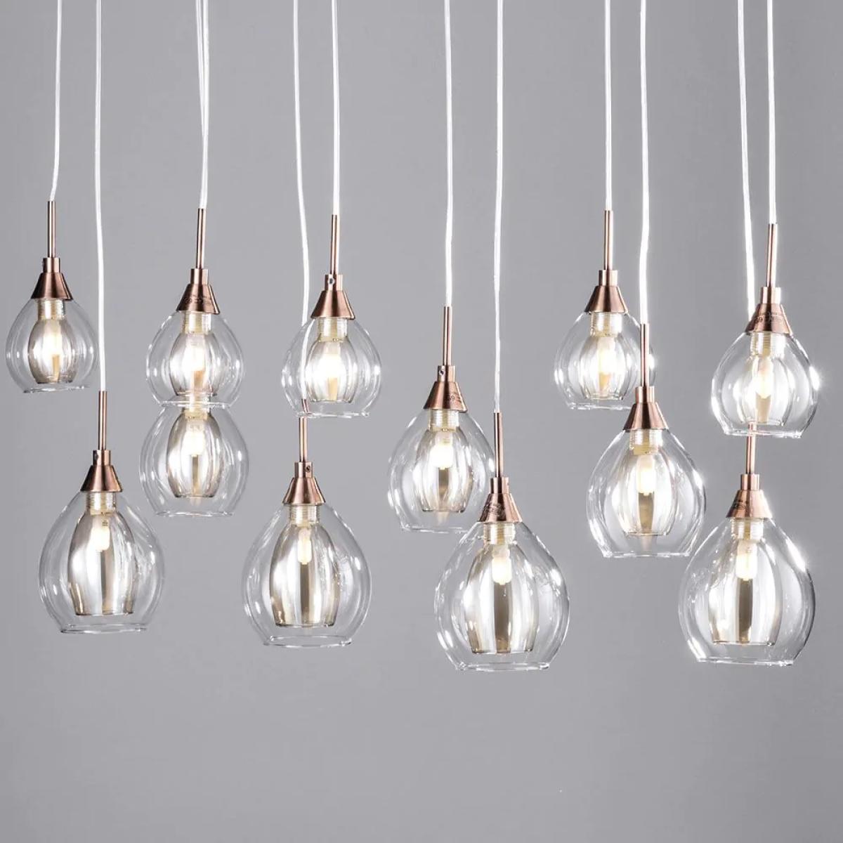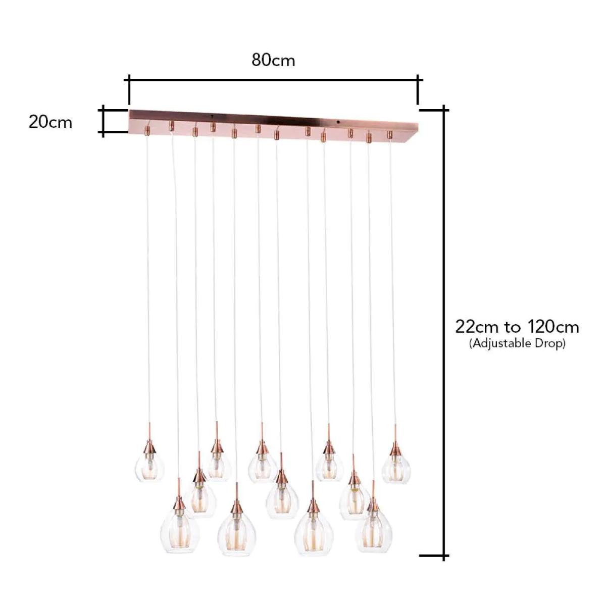 A dazzling centrepiece, the contemporary Carmella 12 Light Diner Pendant Bar features a beautiful display of 12 hanging pendants finished in a gorgeous antique copper and champagne hue. The warm light within diffuses through the glass shades and fills the space with a soft ambience – ideal for creating a statement look among your décors. This stylish addition would create a glamorous statement among any dining area, living room or staircase.