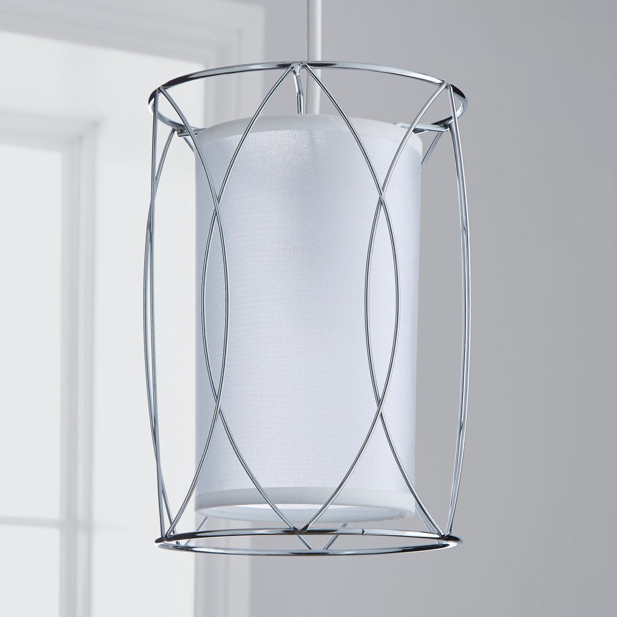 This stunning pendant features a contemporary and stylish geometric frame with a chrome finish and a white diffuse shade, perfect for a range of rooms.