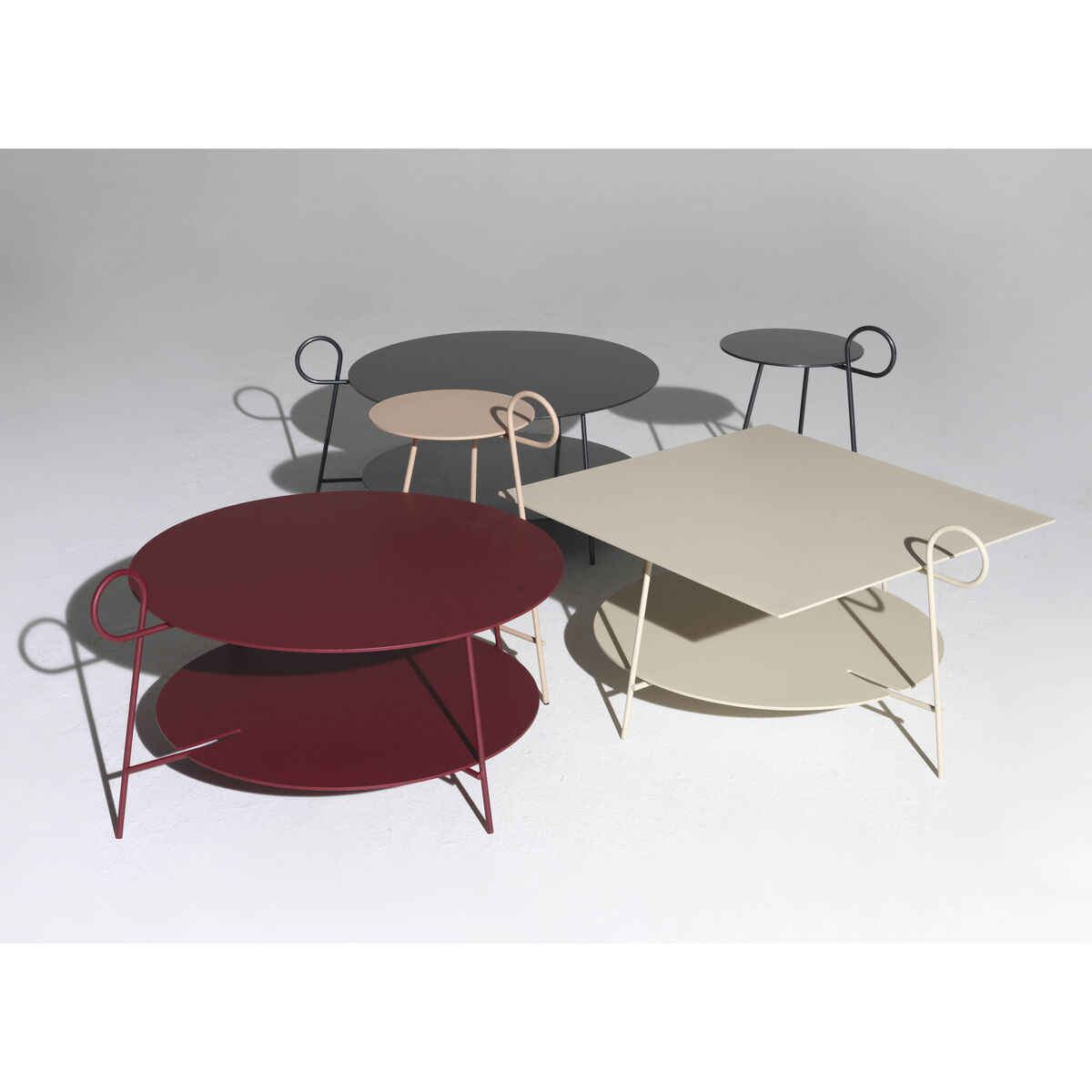 Carmina is a metal coffee table with a sleek and elegant double top. Its immaculate details are original. Its base is fine and tapered. One of the legs forms a delicate loop on the edge of the higher top. A fine slot on the lower top showcases part of the fine structure. It forms a light and graphic composition, a unique design that lends the product all its character. The lower top offers an extra storage space for magazines, books and remote controls.