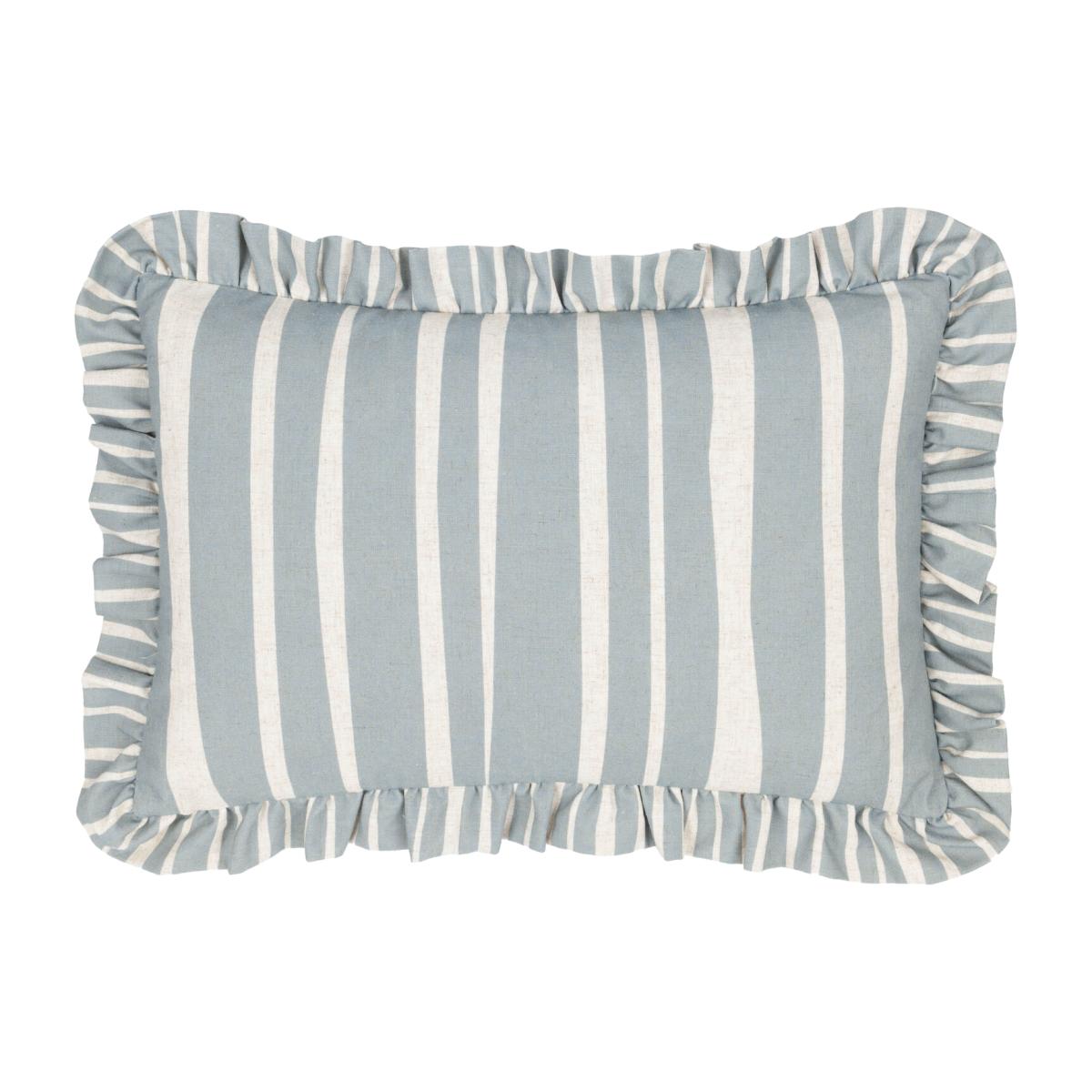 Carmon Stripe Ruffle Cushion Cover - Linen/Blue
