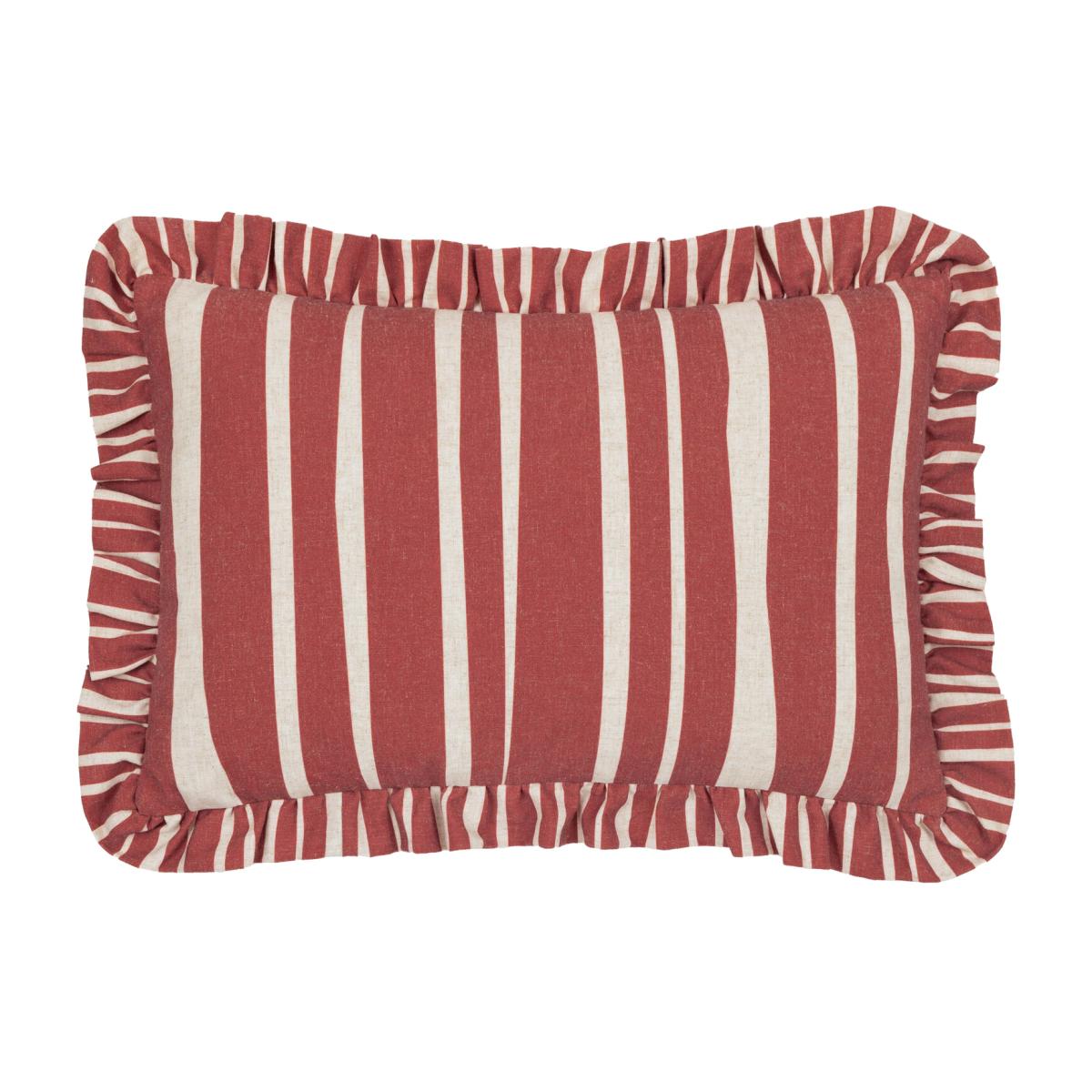 Carmon Stripe Ruffle Cushion Cover - Linen/Red
