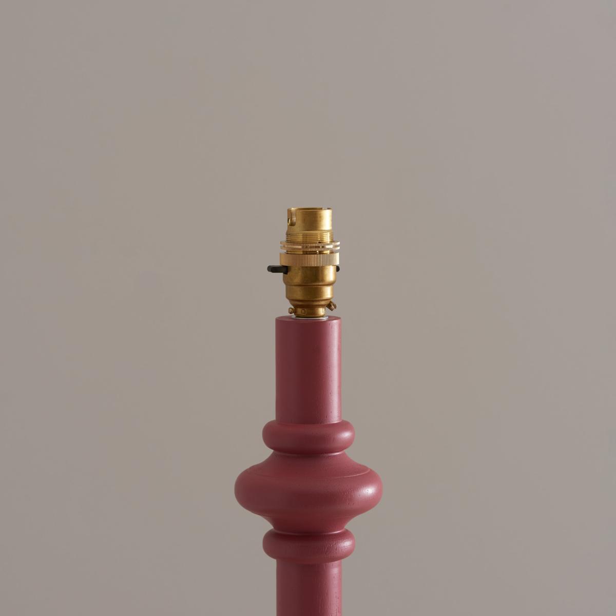 This unique wooden turned spindle floor lamp is inspired by past design styles with a fresh update. Painted in classic satin pink clay with a brass B22 switched lamp holder and grey braided fabric flex. Each product is turned on a wood lathe by hand and will be unique, any variants in finish are part of the individual charm of the product. Pair with one of our 35cm or 40cm decorative fabric shades for a unique classic style.
