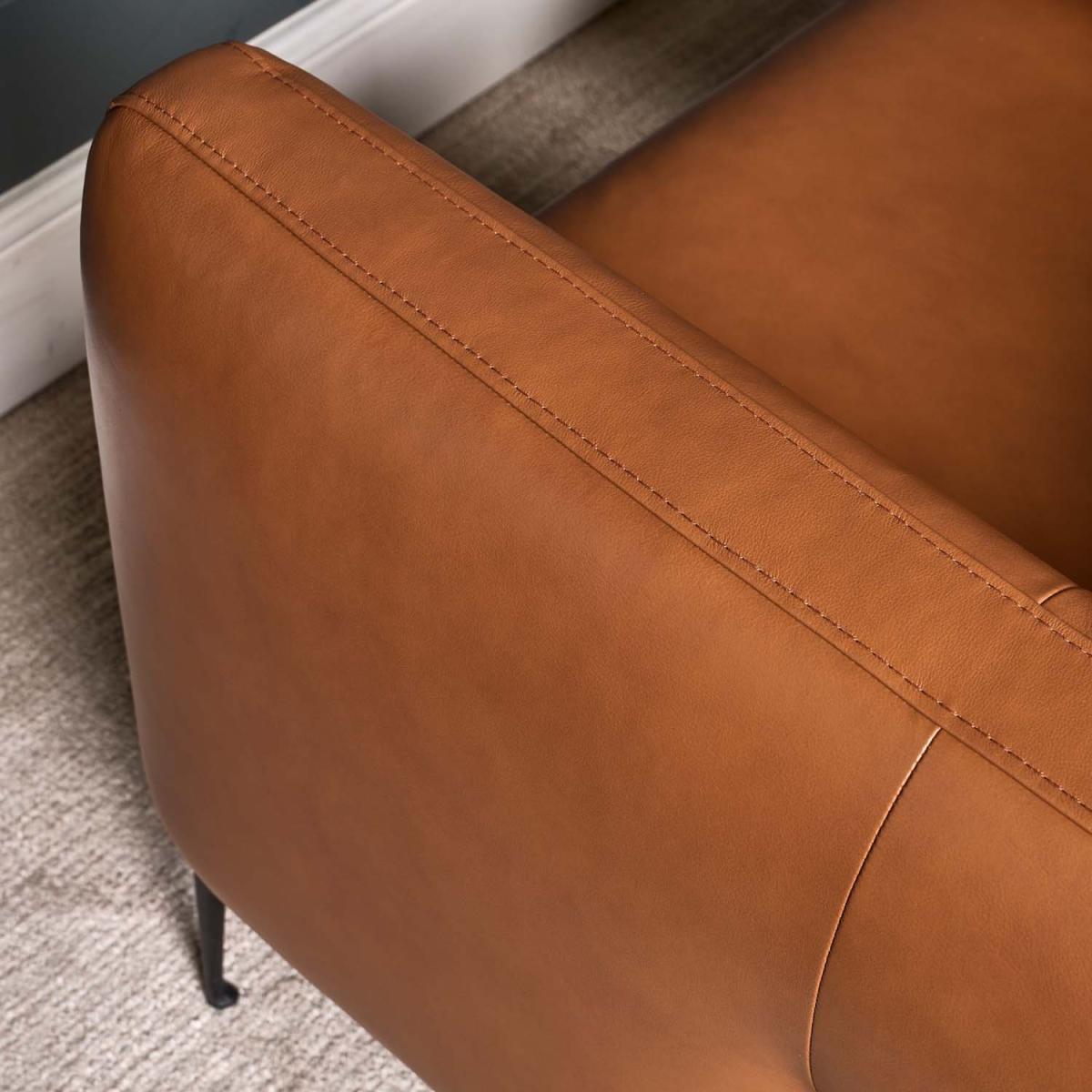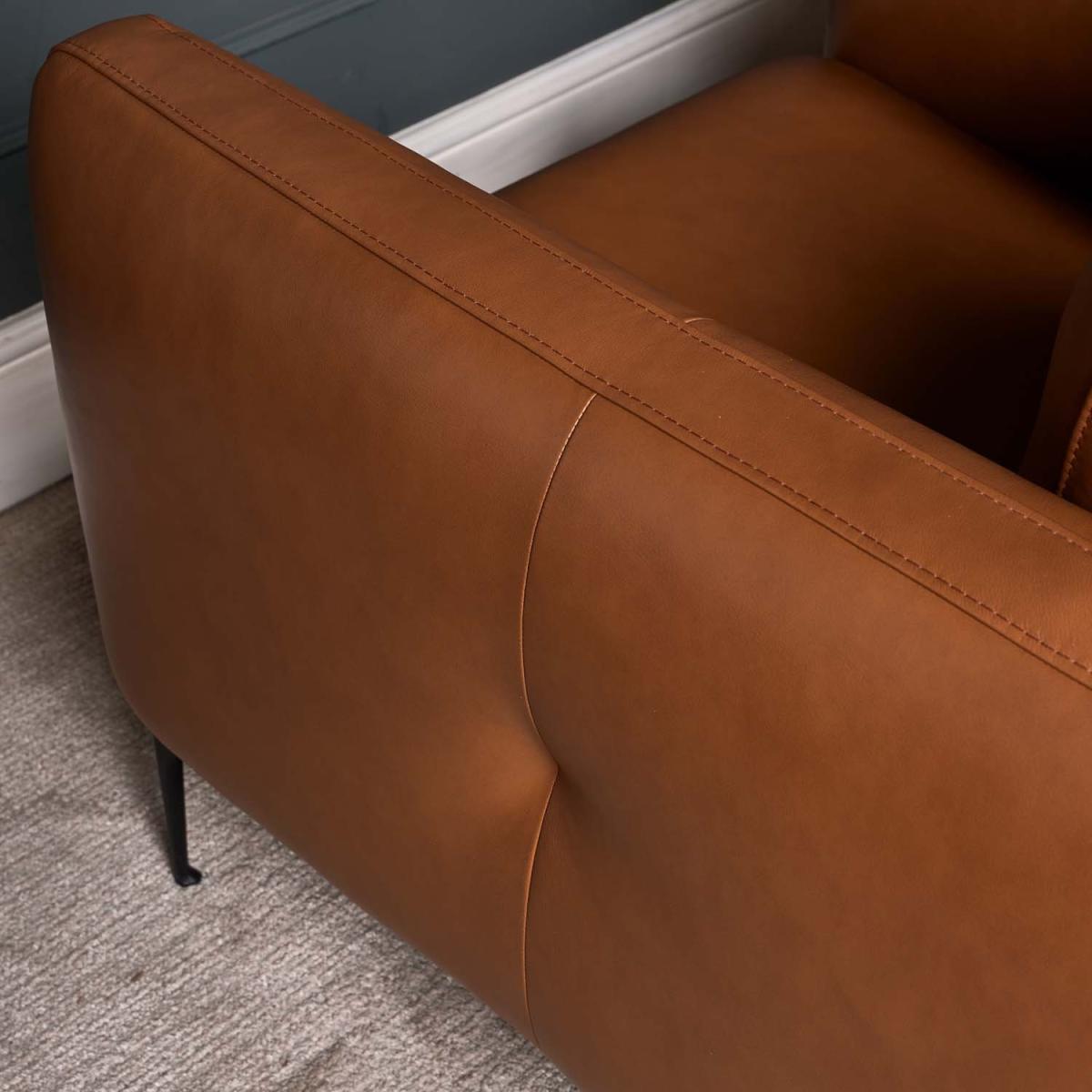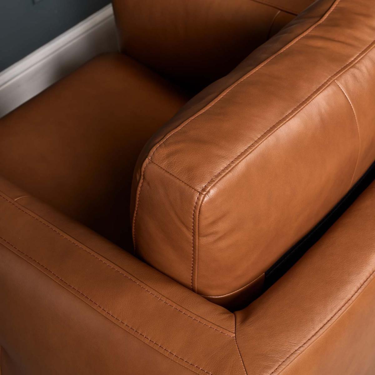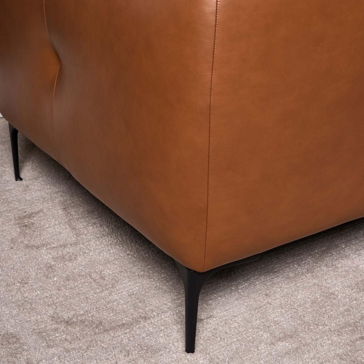 This Carnaby Armchair is an uber-modern design with clean lines producing a sharp silhouette and featuring luxurious real leather upholstery. The chair is upholstered in Palomino Tan leather, which contrasts perfectly with the dark grey metal legs that support it. The armchair forms part of the Carnaby Sofa Collection, and is available in both this gorgeous tan, and a dark blue/grey too. Upgrade your sitting room this season with the Carnaby sofa collection.
