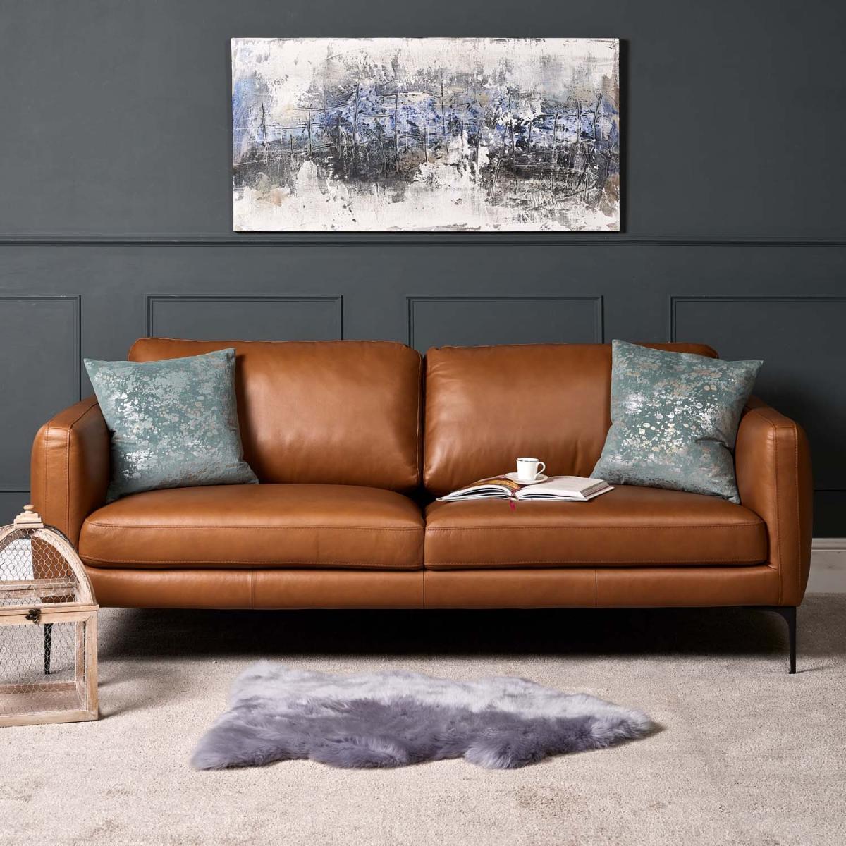 This Carnaby 3 Seater Leather Sofa is a chic modern design with clean lines and luxurious real leather upholstery. The gorgeous Palomino Tan leather gives this sofa a stunning tone, and sits perfectly with the dark grey metal legs that support it. The sofa forms part of the Carnaby Sofa Collection, perfect for upgrading your sitting room this season.