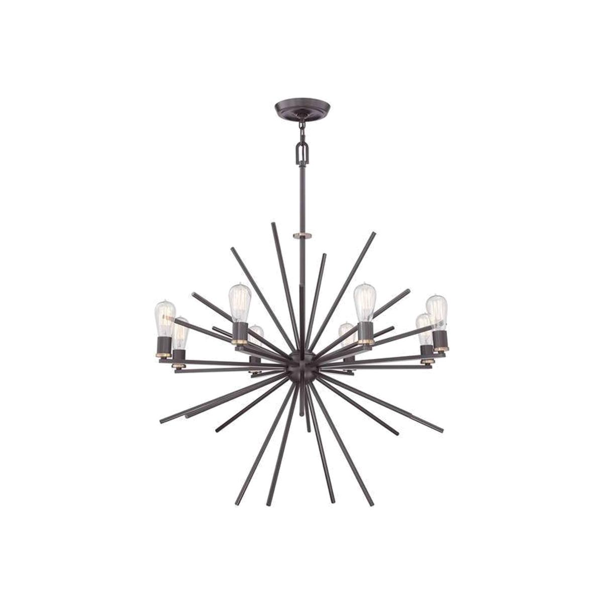 I love this chandelier for its bold, modern aesthetic combined with a touch of industrial charm. The western bronze finish adds warmth and sophistication, making it versatile for both contemporary and transitional interiors. It works particularly well in open-plan living spaces, dining rooms, or entryways where a statement piece is needed. Practical styling tips include hanging it at a height that allows clear sightlines and visual impact, and pairing it with warm-toned bulbs to enhance the bronze finish. For a balanced look, keep surrounding decor simple yet textured, so the light fixture becomes a focal point without overwhelming the space.