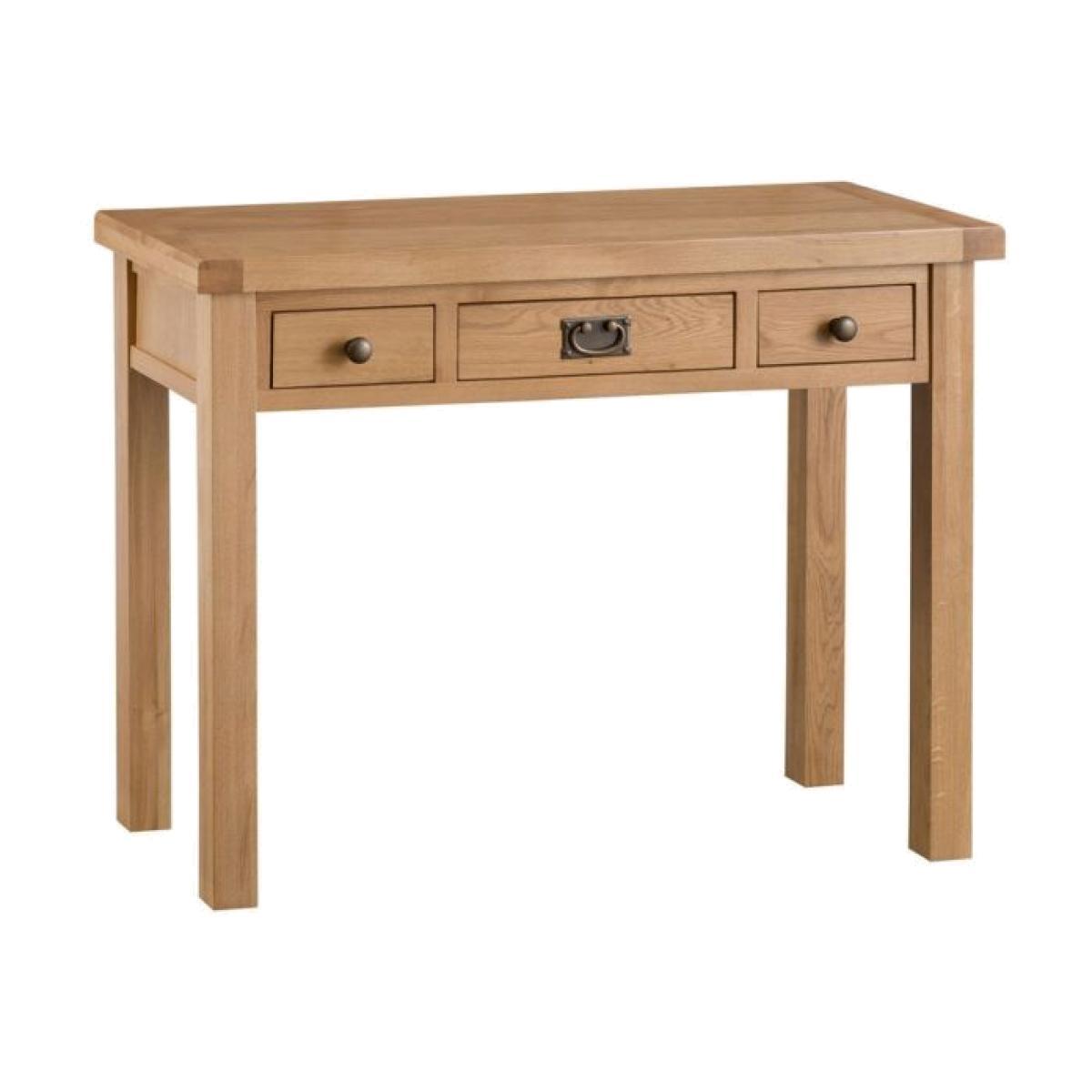 I love the Carrabba Oak dressing table for its versatile, understated design and quality craftsmanship, making it a practical addition to various interiors. Its medium oak finish lends itself well to both traditional and contemporary spaces, adding warmth and a natural touch. This piece works particularly well in rooms with a rustic, Scandi, or vintage aesthetic, but can also serve as a neutral complement in modern minimalist interiors. For styling tips, consider keeping the surface uncluttered with a couple of organised organisers or baskets for small items, and add a mirror above for functionality. Pairing it with soft lighting or natural textures like linen or woven baskets will enhance its charm without overwhelming the setting.