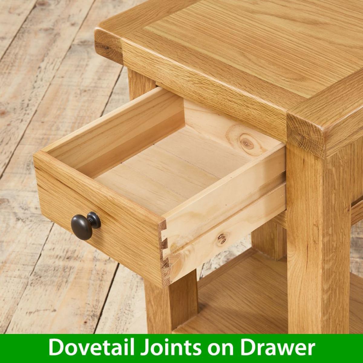 Medium Oak Finish. Dovetailed Drawer On Wooden Guides. Low 9 cm Shelf For Extra Storage. Antique Brass Effect Pull Handle. Medium Oak Finish. Dovetailed Drawer On Wooden Guides. Low 9 cm Shelf For Extra Storage. Antique Brass Effect Pull Handle.