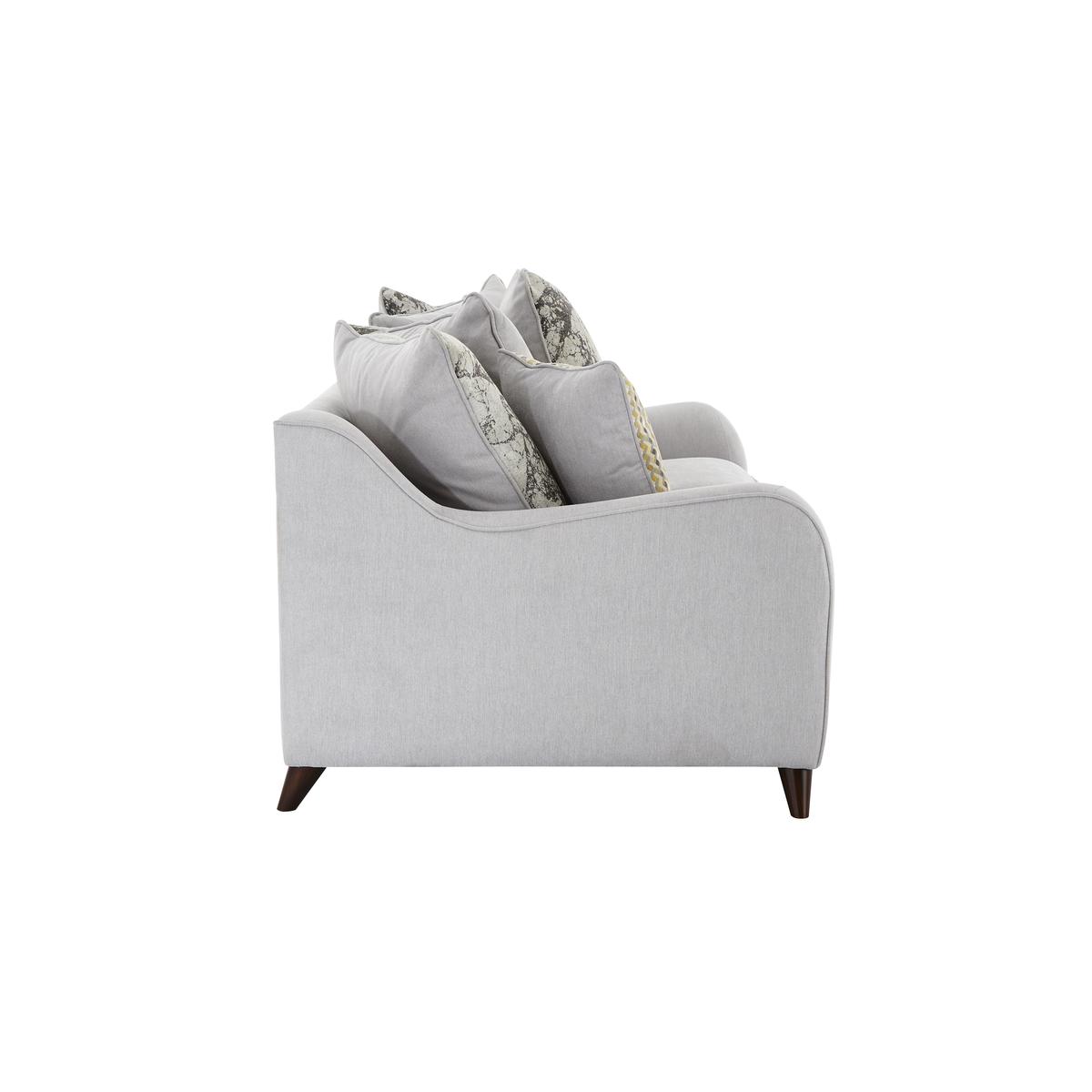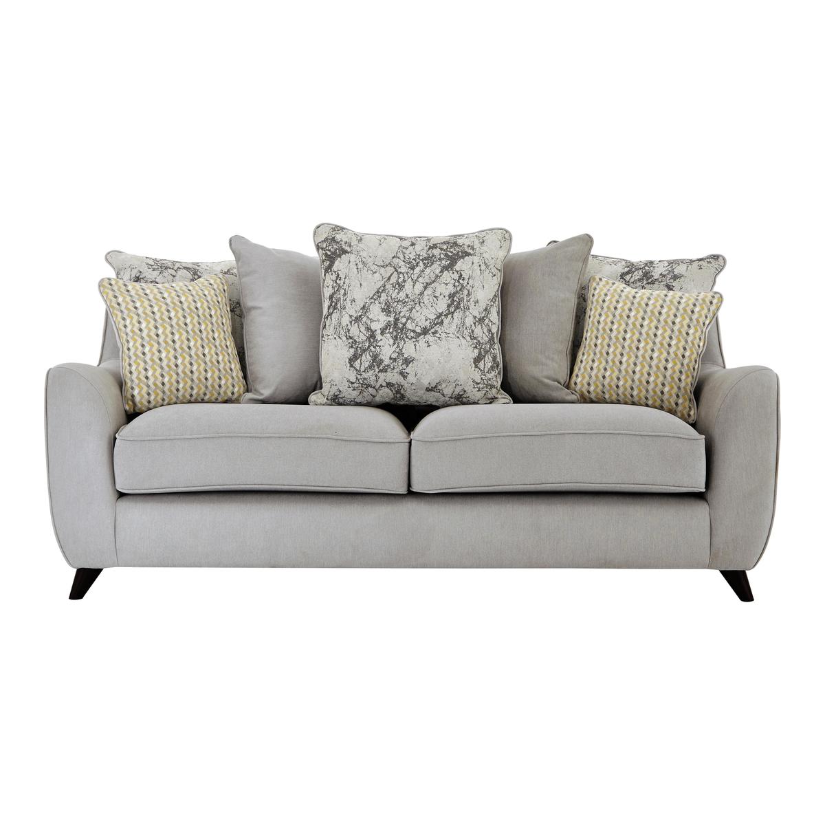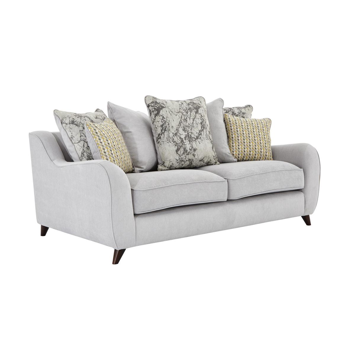 The Carrara three seater scatter back fabric sofa is roomy, elegant and – with its sumptuous pillow backs – invites you to relax and unwind. It has a clean, contemporary style, with softly curving arms, piping detailing and splayed wooden legs in dark wood – for a light wood finish simply call 0800 804 8879. Serpentine spring seat and back suspension, sumptuous fibre-filled back pillow backs and deep foam-filled seat cushions provide a wonderfully comfortable sit. This large sofa is upholstered in soft to the touch fabric in a choice of lovely neutral shades. You’ll feel spoilt thanks to the five large pillow back cushions – two with plain fabric back and front and plain piping, and two reversible, with a patterned front in a choice of vibrant accent patterns, with a plain back and plain piping. You can also, if you wish, add to the comfort with additional reversible scatter cushions in a choice of vibrant accent patterns, available separately. The Carrara three seater pillow back fabric sofa is part of the flexible Carrara modular collection. Top Tip: To keep your fabric sofa or chair looking good, plump the seat and back cushions and any scatter cushions regularly, and – where possible – turn and rotate to ensure even wear. Plumping and rotation is important as interiors settle over time, and some fabrics can show wear on areas of more use or in direct sunlight. Using a soft brush or vacuuming with the curtain attachment weekly prolongs the life of fabric upholstery. Ideally clean professionally annually.