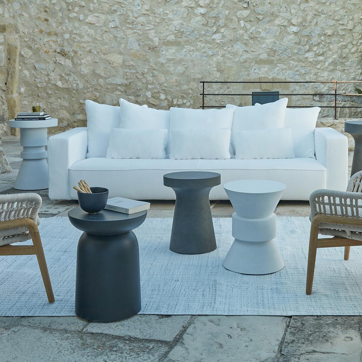 Designed in rockstone - a material perfect for outdoor use - the Carrasco side table evokes the shape of a totem. Product Details • Made of rockstone, the colour is dyed into the material. • Hand moulded: Each piece is unique. Quality Info • Rockstone is made of fibreglass, epoxy resin and mineral powders. The rockstone composition provides robust, rot-proof and weather-resistant outdoor furniture. This material is also lighter than cement. The smooth surface makes cleaning easy. Dimensions • Diameter: 35cm • Height: 45cm • Weight: 5kgDelivery:. Sold pre-assembled. It will be delivered to your door. Note! Please check that all access points are large enough to accommodate your delivery (doors, stairs, lifts).Parcel dimensions and weight1 parcel • L42 x H53 x D42cm, 6.5kg