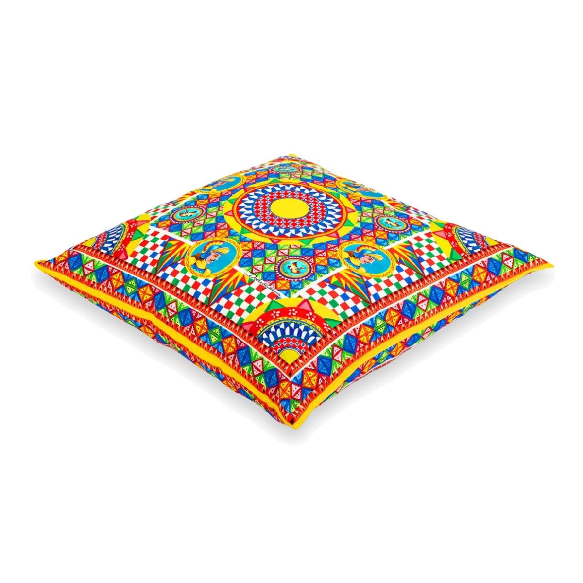 Add a burst of colour to a favourite chair or sofa with this striking, medium-sized canvas cushion from Dolce & Gabbana Casa, showcasing a folklore-inspired, vibrantly hued Carretto Siciliano design found throughout the brand’s collection.