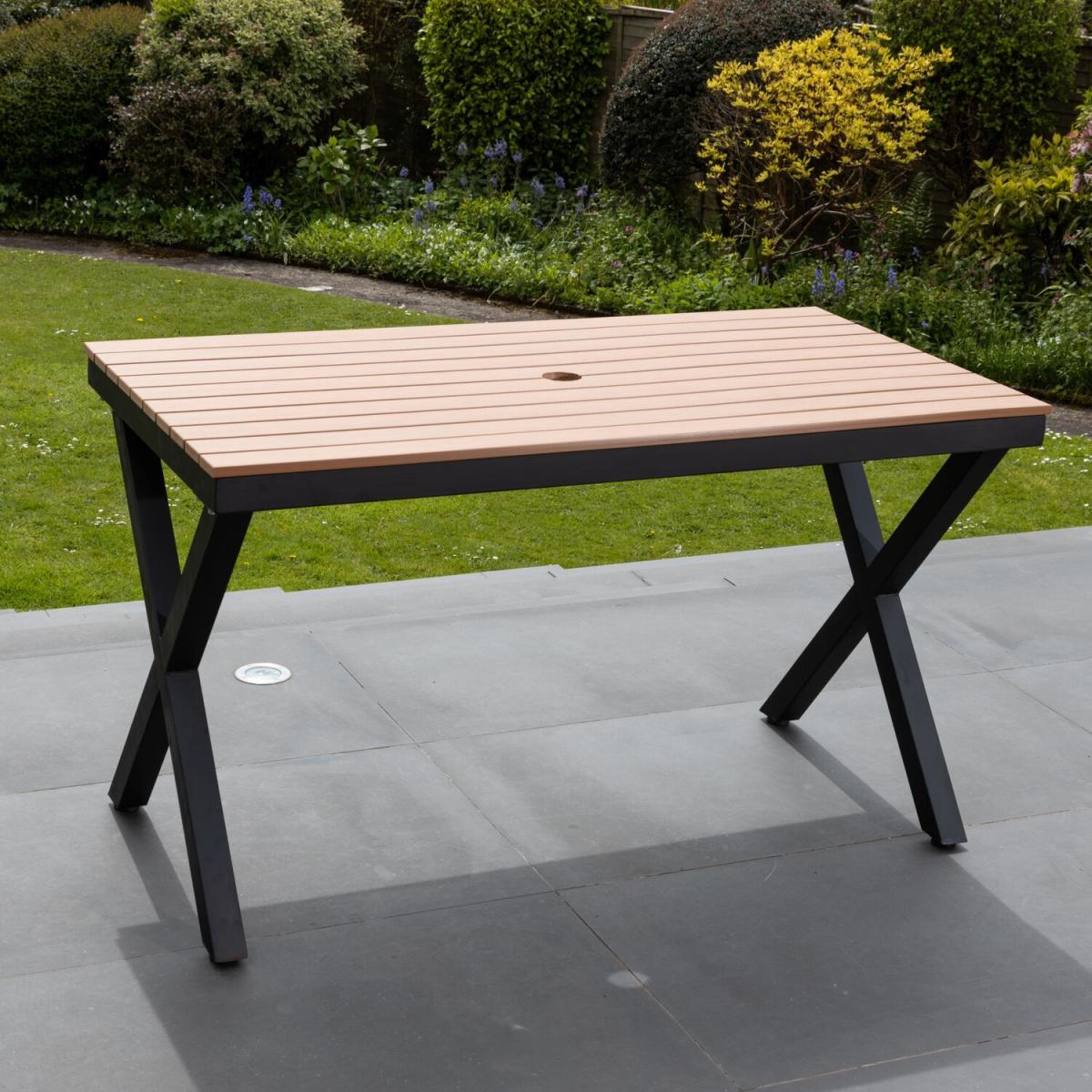 Elevate your outdoor dining experience with our Carrick Outdoor Dining Table. Designed for both style and durability, this rectangular table measures 130 x 70cm and stands at a comfortable height of 75cm, offering ample space for your outdoor gatherings. Crafted with quality in mind, this option includes the table only, providing you with the flexibility to customize your outdoor seating arrangements according to your preferences. Constructed with a sturdy powder-coated metal frame, the Carrick Outdoor Dining Table ensures stability and resilience against outdoor elements. Its solid PS wood effect plastic top and seats add a touch of sophistication to your outdoor space while offering easy maintenance and cleaning. Whether you're hosting a barbecue, enjoying a family meal, or simply soaking up the sun, this table provides the perfect setting for outdoor entertaining. With easy self-assembly instructions included, setting up your Carrick Outdoor Dining Table is a breeze, allowing you to spend less time assembling and more time enjoying your outdoor oasis. Plus, with our commitment to quick and efficient delivery, you can have your table ready for use in no time. Upgrade your outdoor dining area with the Carrick Outdoor Dining Table and create unforgettable memories with friends and family in the comfort of your own backyard.