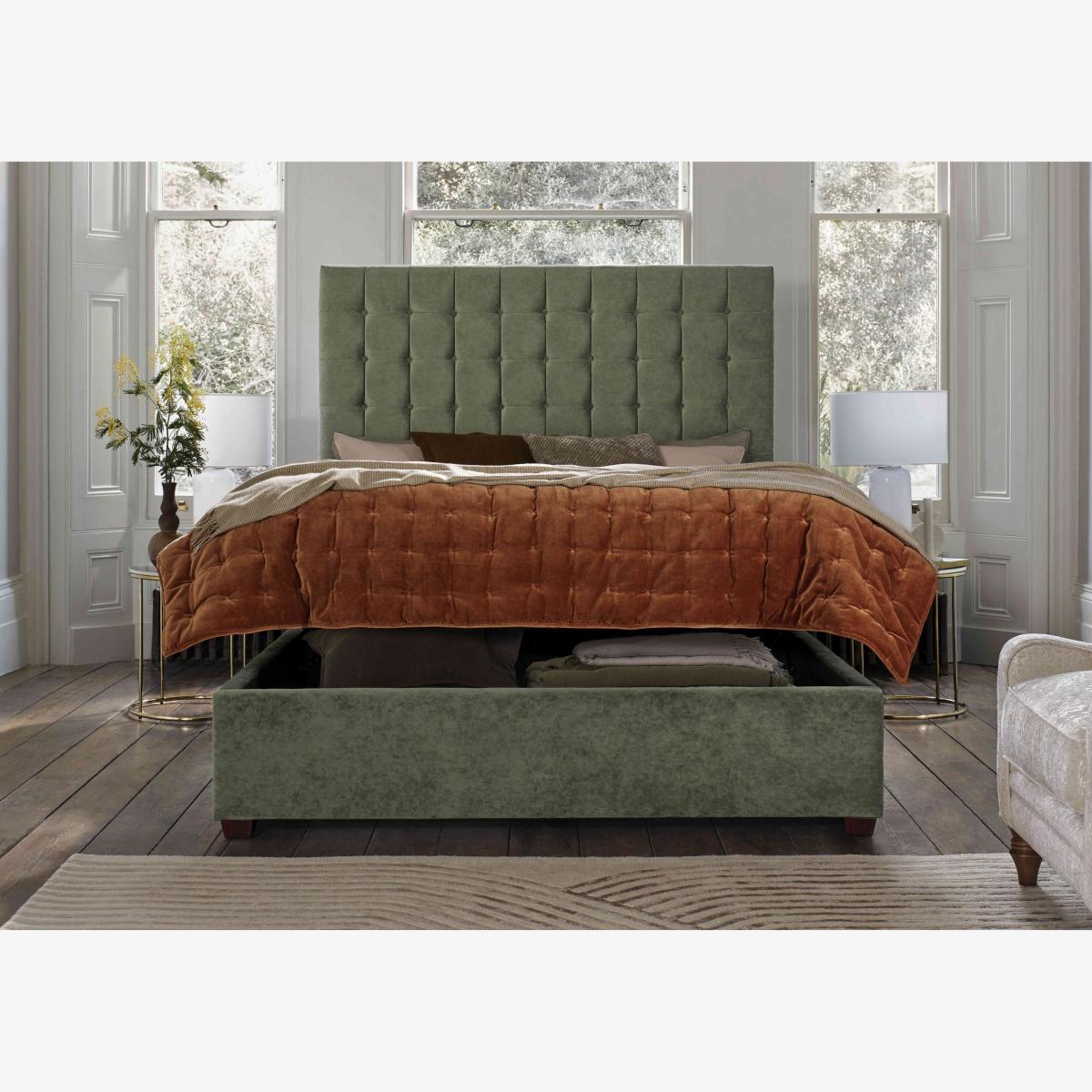 What if you could design your ideal ottoman bed frame? What if you could choose from a range of sumptuous cushioned headboards in dozens of upholstery fabrics, add headboard wings and a matching footboard and more? It’s all possible with our exclusive Mix and Match collection of electric and manual ottoman bed frames. And because there are literally hundreds of possible combinations, it’s impossible to show them all. That’s why you’ll find just a small selection of carefully designed Mix and Match bed frames here which we hope you'll love – or perhaps even inspire you to create your own. The Mix and Match range of customisable ottoman bed frames is exclusively available at Furniture Village. Dreaming of the perfect bed frame? This one has effortless electric-powered ottoman storage and comes complete with our luxurious tall Carrie headboard. Handmade. Why you'll love it Luxury style, everyday practicality – this electric ottoman bed frame will transform your bedroom. Comes complete with our tall Carrie headboard with contemporary linear buttoning. Large ottoman storage compartment is ideal for lightweight items like duvets, pillows and clothing. It’s electric-powered. The ottoman storage space opens and closes at the touch of a button. The mechanism has a child-proof safety lock. Sprung slatted wood base provides excellent support for all kinds of mattresses. Huge choice of high-quality fabric upholstery options. In double, king and super king bed sizes. Handmade in the UK exclusively for Furniture Village. This electric ottoman bed frame with headboard is part of our Mix and Match range. Mix and match headboard styles and sizes, ottoman mechanisms, upholstery fabrics and more. What you need to know Mattress sold separately. For easier access, the bed frame and the headboard are each available in two pieces. Maximum mattress weights: double 90 kg, king 100 kg, super king 110 kg. End-opening ottoman with electric-powered mechanism. Please keep hands clear of the mechanism when opening and closing the ottoman. Do not sit on the foot end of this ottoman bed frame when opening. Clean regularly using a soft brush or vacuum with the curtain attachment. Deal with any spills promptly. Professional cleaning advised for oil- and grease-based stains. Some fabrics can show wear on areas of more use or in direct sunlight. Item code: CARROP50--038