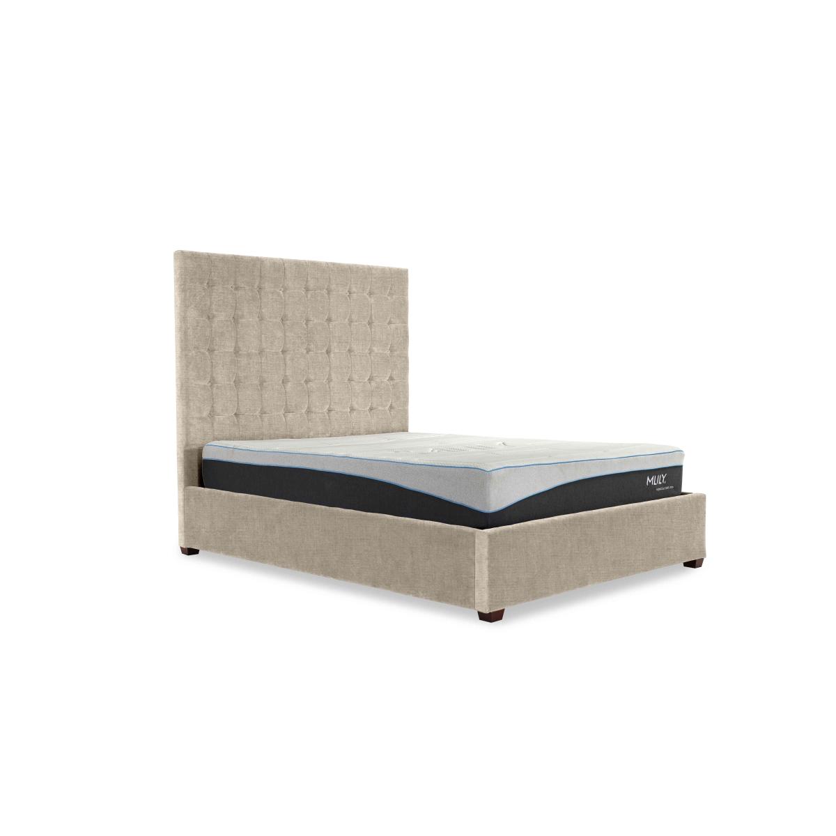 What if you could design your ideal ottoman bed frame? What if you could choose from a range of sumptuous cushioned headboards in dozens of upholstery fabrics, add headboard wings and a matching footboard and more? It’s all possible with our exclusive Mix and Match collection of electric and manual ottoman bed frames. And because there are literally hundreds of possible combinations, it’s impossible to show them all. That’s why you’ll find just a small selection of carefully designed Mix and Match bed frames here which we hope you'll love – or perhaps even inspire you to create your own. The Mix and Match range of customisable ottoman bed frames is exclusively available at Furniture Village. This stunning ottoman bed frame, complete with the eye-catching tall Carrie headboard, makes a luxurious statement and gives you valuable extra bedroom storage space. Why you'll love it Luxury style, everyday practicality – this ottoman bed frame will transform your bedroom. Comes complete with our tall Carrie headboard with contemporary linear buttoning. Large ottoman storage compartment is ideal for lightweight items like duvets, pillows and clothing. Sprung slatted wood base provides excellent support for all kinds of mattresses. Huge choice of high-quality fabric upholstery options. In double, king and super king bed sizes. Also available with an electric-powered ottoman lift mechanism. Handmade in the UK exclusively for Furniture Village. This ottoman bed frame with headboard is part of our Mix and Match range. Mix and match headboard styles and sizes, ottoman mechanisms, upholstery fabrics and more. What you need to know Mattress sold separately. For easier access, the bed frame and the headboard are each available in two pieces. Maximum mattress weights: double 90 kg, king 100 kg, super king 110 kg. End-opening ottoman with manual mechanism. Please keep hands clear of the mechanism when opening and closing the ottoman. Do not sit on the foot end of this ottoman bed frame when opening. Clean regularly using a soft brush or vacuum with the curtain attachment. Deal with any spills promptly. Professional cleaning advised for oil- and grease-based stains. Some fabrics can show wear on areas of more use or in direct sunlight. Item code: CARROM46--001
