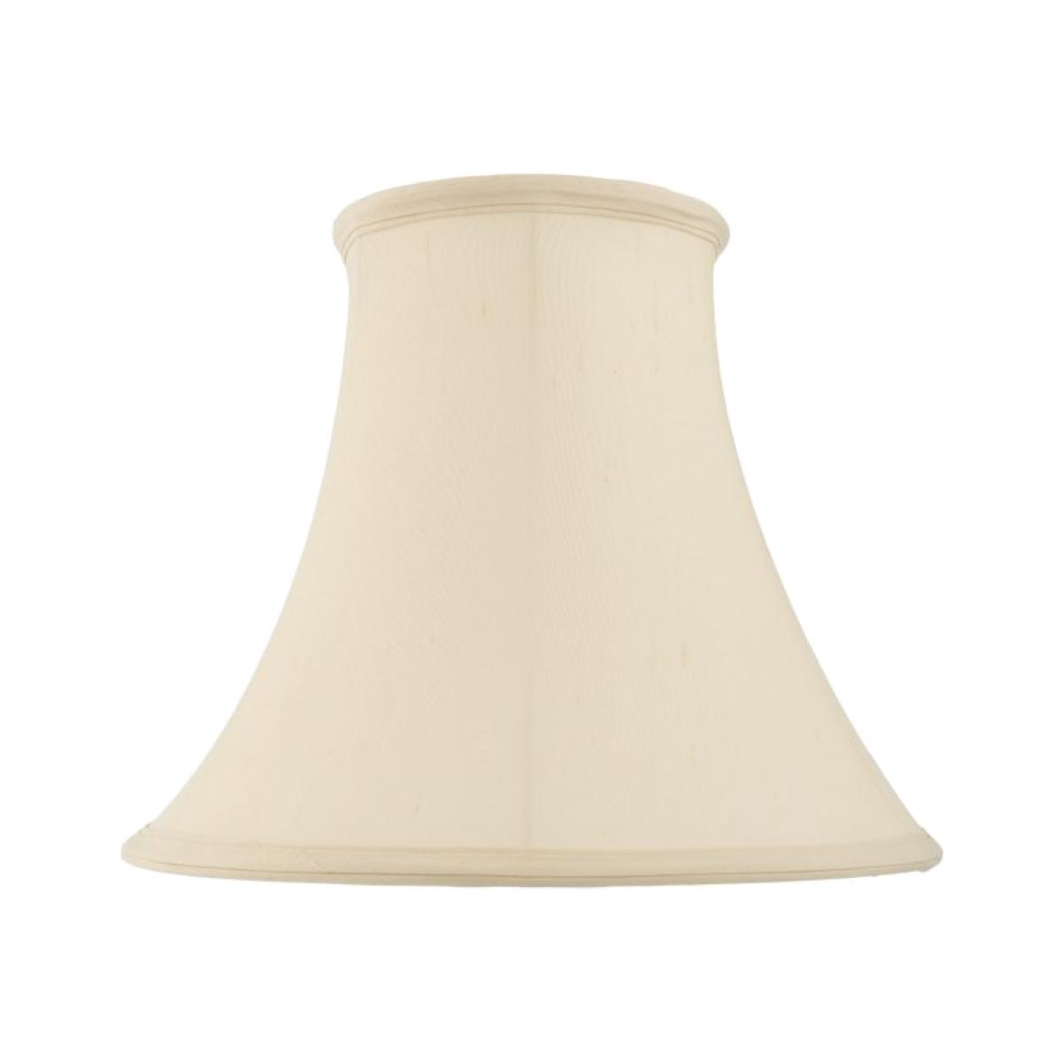 This 12 inch handmade cream lamp shade is shaped in a round bell design and has a double folded trim on the top and bottom. For use with a variety of lamp bases and available in a choice of sizes. Note - this shade has a fixed gimbal and is not suitable for use with pendants.