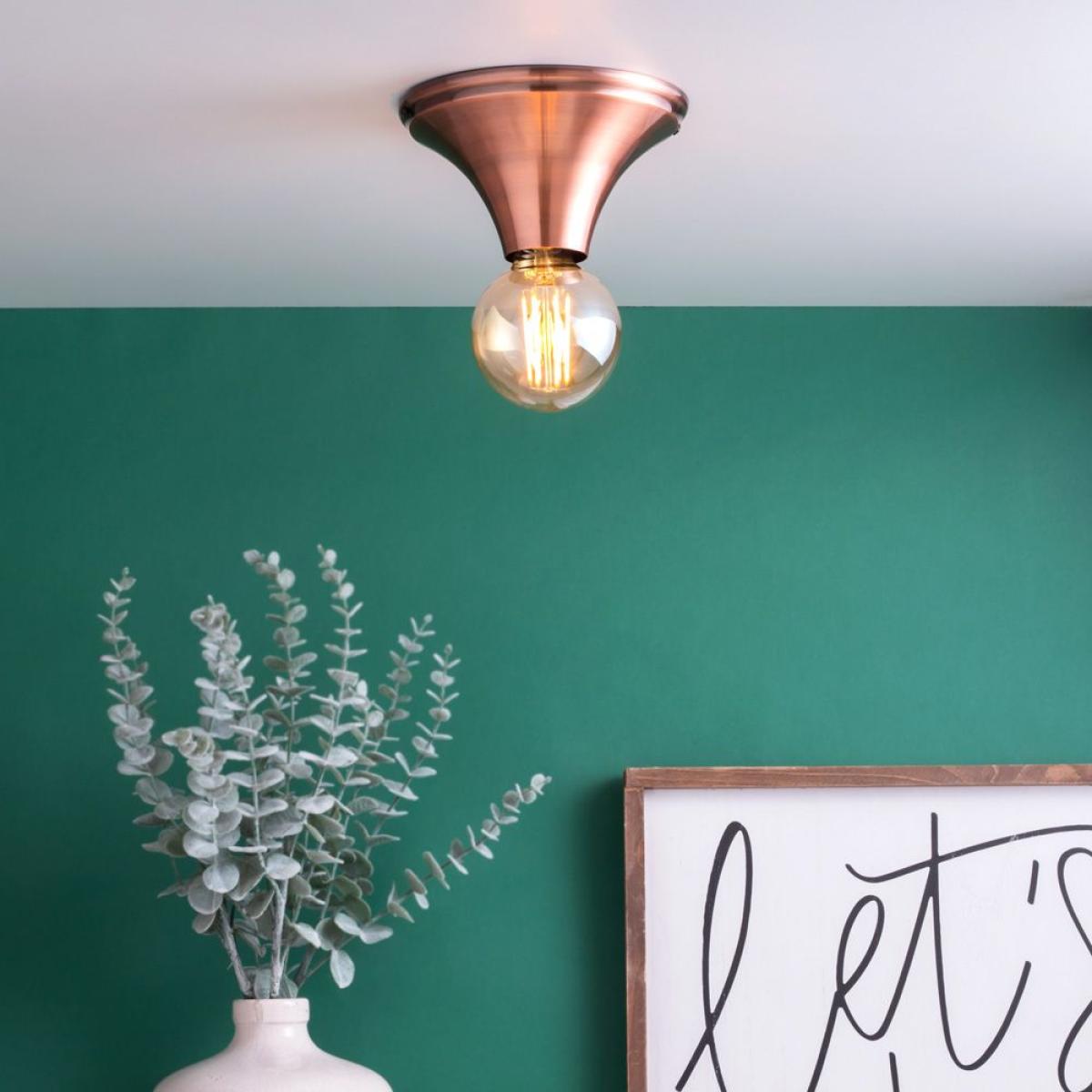 Industrial lighting for your home décor, the Carrie Ceiling rose for E27 lamps is guaranteed to add a modern style to your interior. This flush fitting features an antique copper finish that offers a robust appearance and has a minimalist design that is ideal for low ceilings. It also looks additionally decorative when paired with a vintage filament light bulb (not included) to elevate the industrial element to this light.