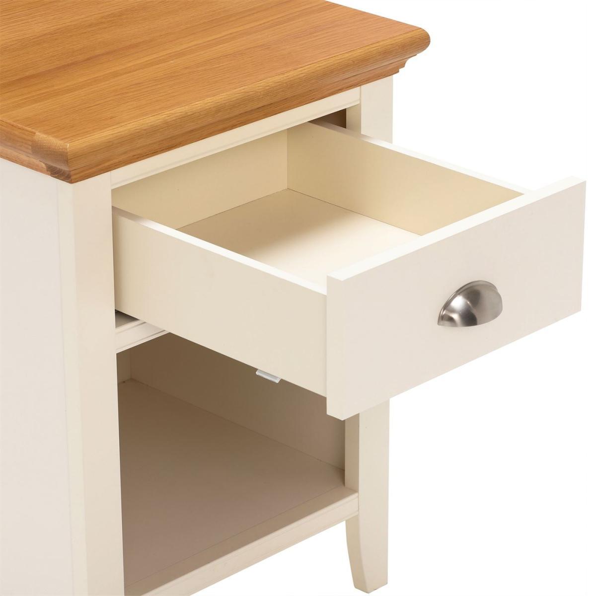 Design. Contrasting ivory and oak make for a beautifully unique nightstand. The Carrington 1 Drawer Nightstand looks perfect standing in a traditional or Scandinavian inspired interior setting. Built for purpose and style, the Carrington's practical drawer offers plenty of room to store bed side essentials, while a handy soft close feature mean no disturbed sleep. Pair the Carrington 1 Draw Nightstand with the Carrington 5 Drawer Tall Chest for a complete look.