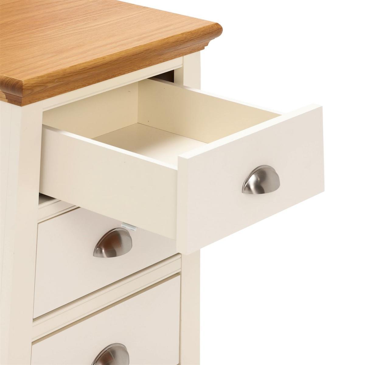 The Carrington bedside table is a versatile piece that combines a classic ivory finish with a natural oak top, making it easy to integrate into both traditional and contemporary interiors. I love how the three drawers offer practical storage, keeping bedside essentials organised without clutter. It works particularly well in coastal or cottage-style rooms, where its relaxed yet refined aesthetic adds a touch of warmth. For styling tips, pair it with neutral bedding and subtle accessories for a calming vibe, or add a pop of colour with decorative lamps or vases on the top. Its neutral palette makes it a flexible addition that complements a wide range of colour schemes and interior styles.