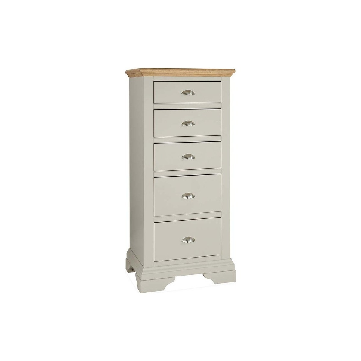 Carrington 5 Drawer Tall Chest, Soft Grey and Oak