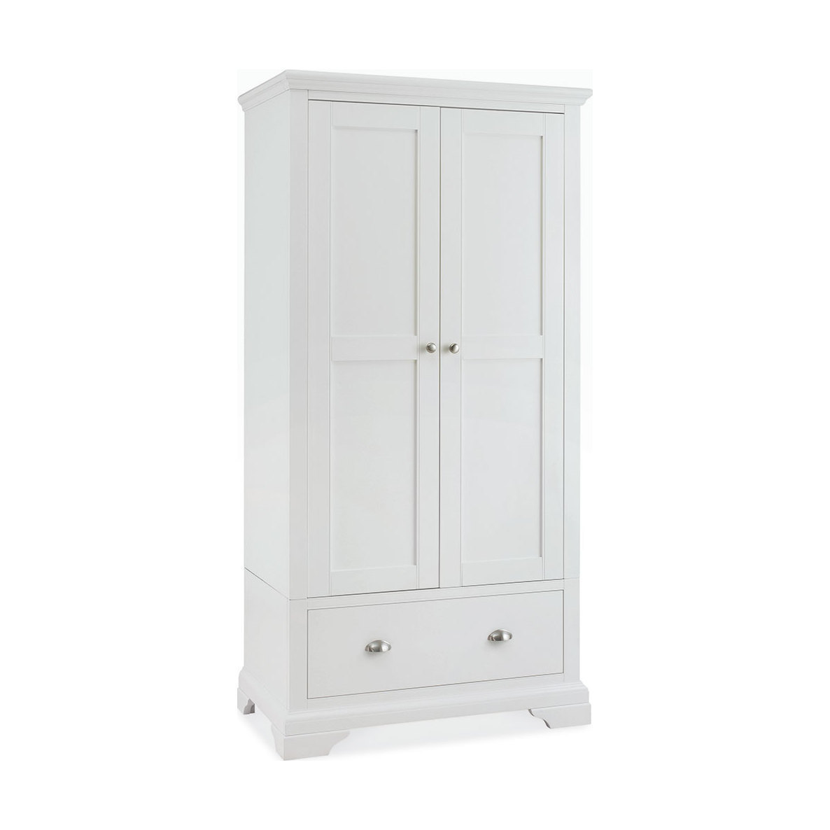 The Carrington Double Wardrobe will add a timeless appeal to your bedroom. Combining a traditional country look with contemporary style, it boasts stylish design detail such as classically understated bracket feet and superior quality brushed steel handles. The stunning shape is enhanced by the natural beauty of oiled American oak solids and veneers, contrasting beautifully with a fresh white paint finish.;The Carrington Double Wardrobe is part of a timeless range that offers elegance and practicality and looks perfect with the stylish Carrington Dressing Table and Stool.