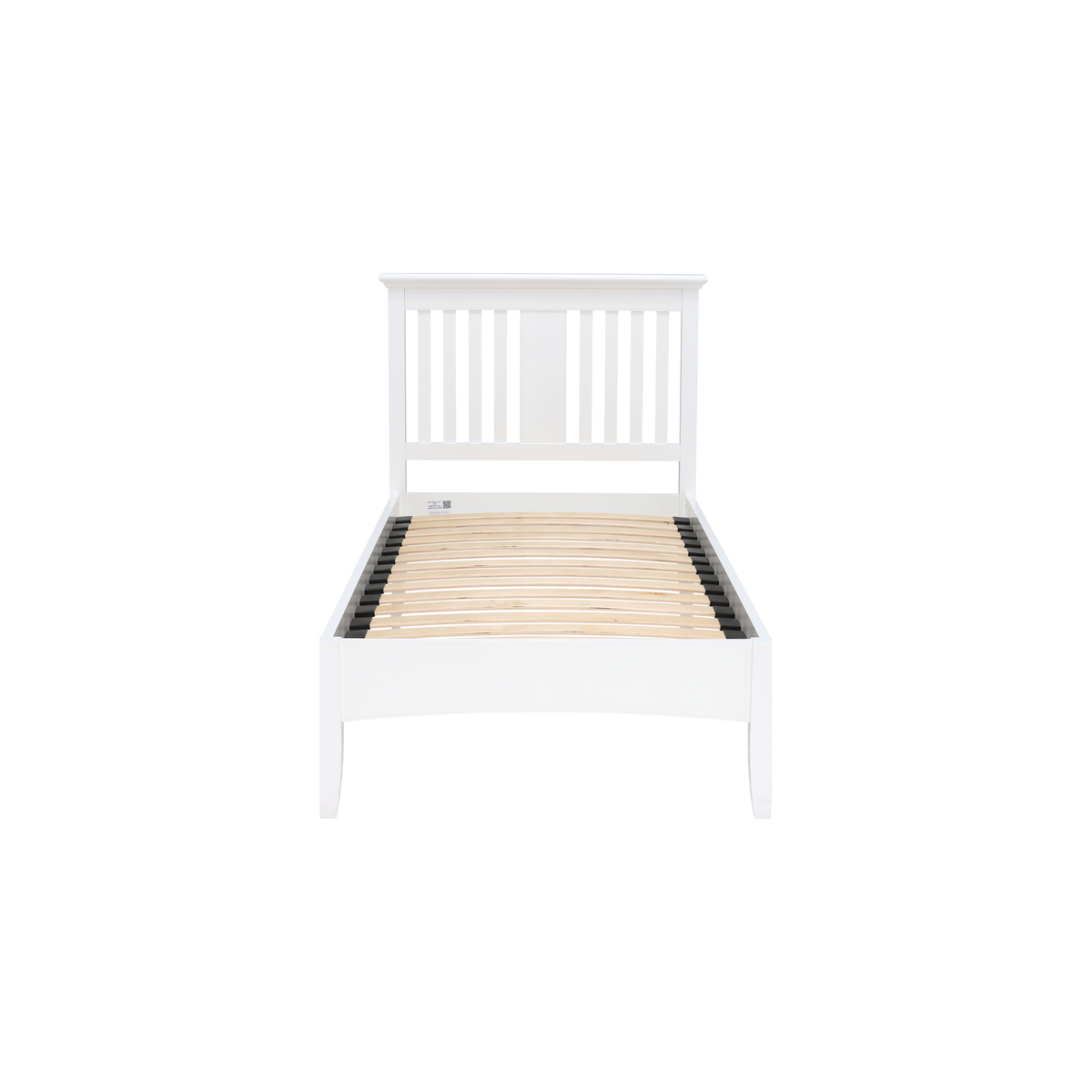 The Carrington Single 3ft Bed Frame is is part of a co-ordinating range of classic bedroom furniture that brings together both traditional and modern styles.;A great choice for a child's bedroom or a spare room, it features an integrated slatted headboard and a chic white painted and lacquered finish. Pair with matching items from the Carrington bedroom range for country living with a contemporary twist.