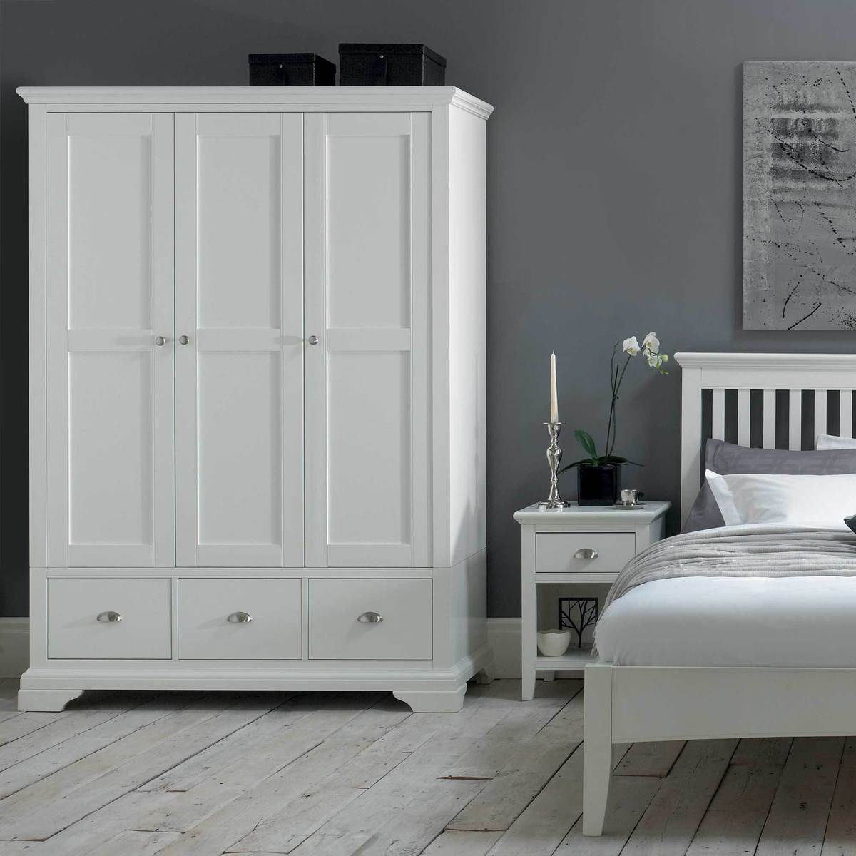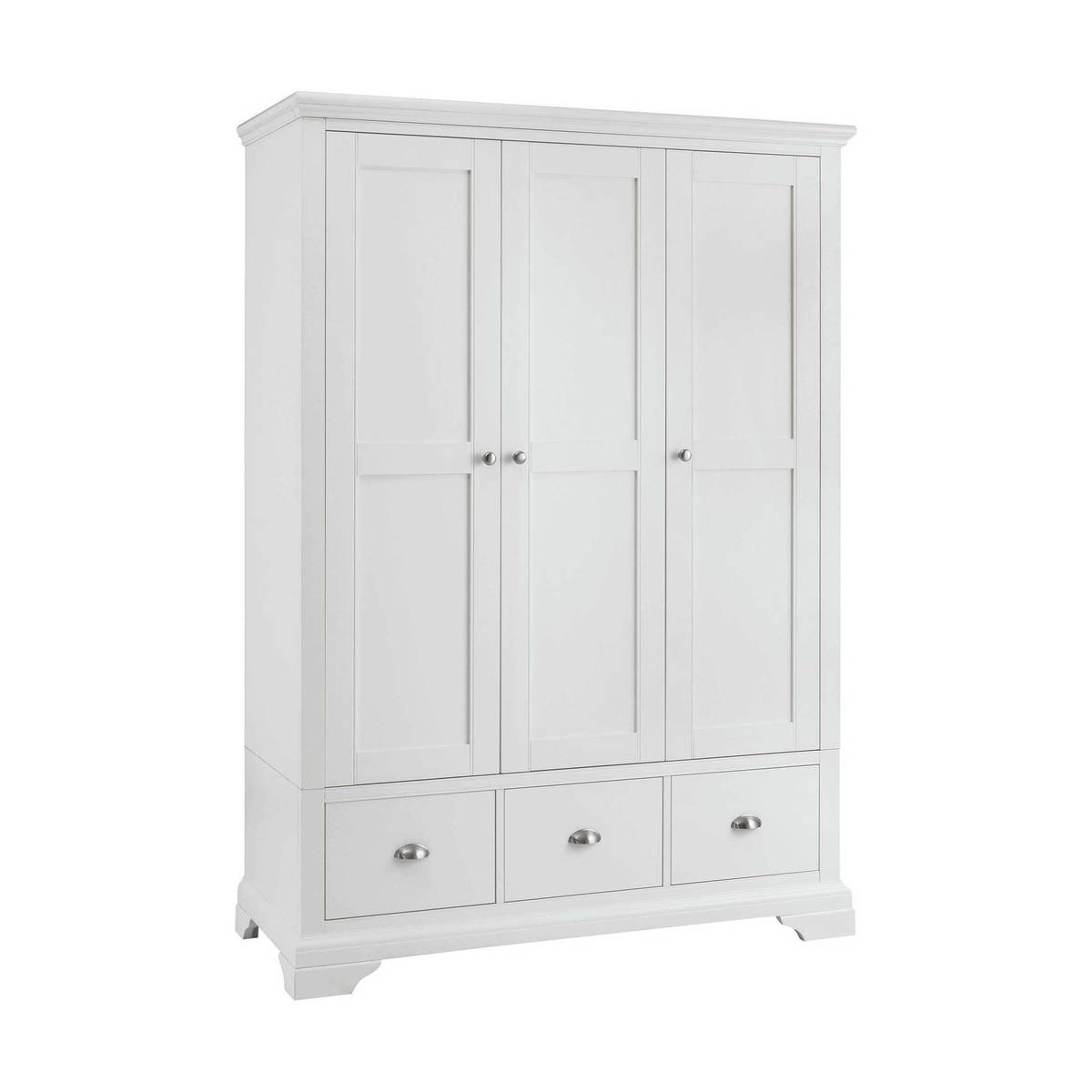 The Carrington Triple Wardrobe is a great choice for any bedroom. It's practical design features three cupboards and three drawers, providing plenty of storage space for clothing and accessories.;Carrington boasts stylish design detail such as classically understated bracket feet and superior quality brushed steel handles as well as stunning corniced tops. The collection is enhanced by the natural beauty of oiled American oak solids and veneers, contrasting beautifully with a crisp white paint finish.