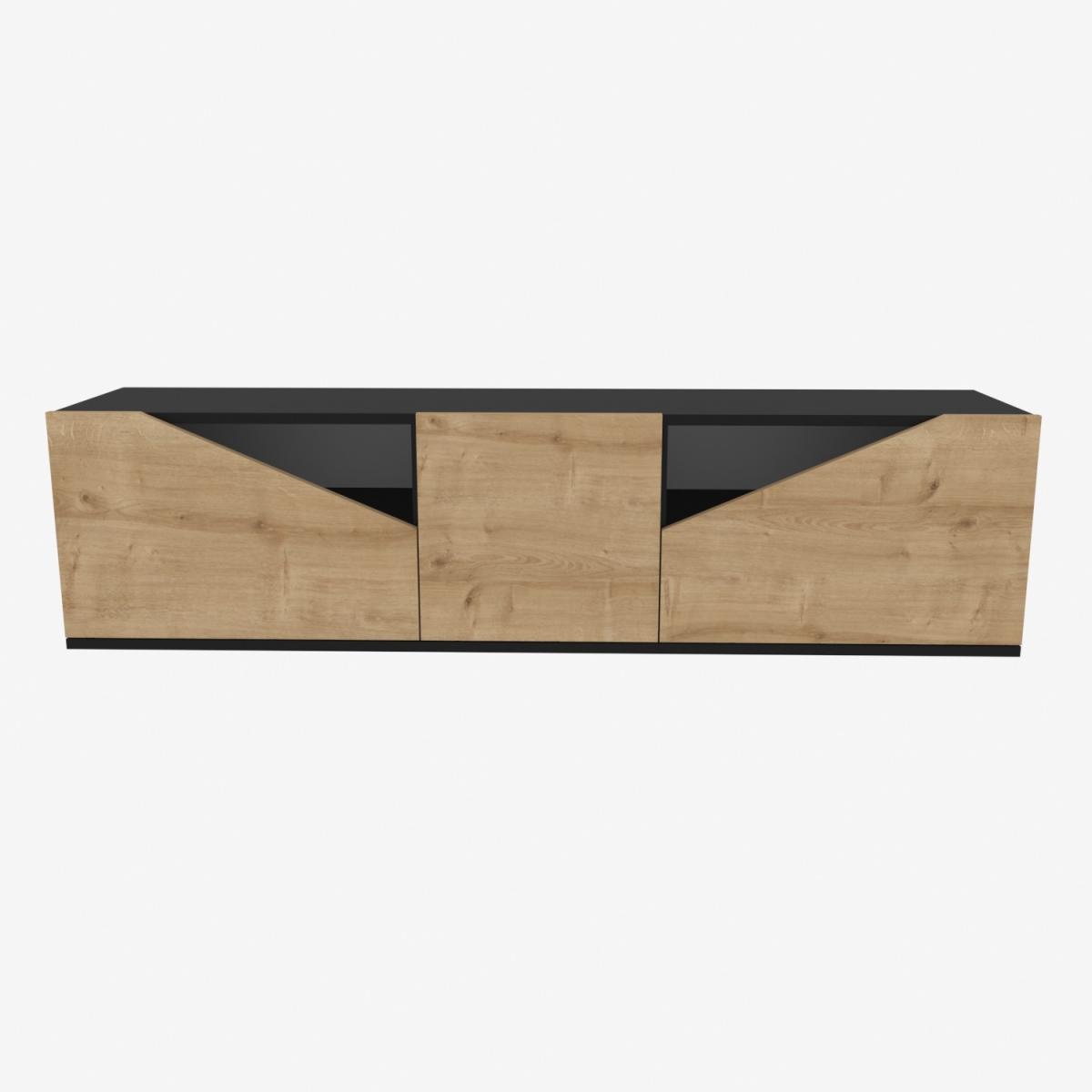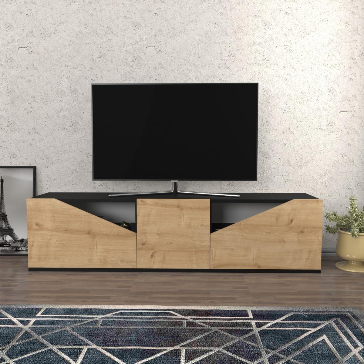 Carson 160 cm wide TV Stand and media console for TVs up to 72" is chic and geometric design. With its symmetrical appearance and extraordinary design, it creates a modern look in your home. The cabinet is characterized by a combination of closed and open areas, meets your storage needs with 3 closed compartments for arranging DVD players, game consoles, media libraries, accessories, decorative elements and much more. With the help of the illustrated assembly instructions included in the scope of delivery, the structure is very nice and clear. The media stand is made of 18mm thick quality melamine coated particle board and banded with first-class PVC edge banding tape. It is manufactured using eco-friendly and health-friendly TSE certified materials. The product will be delivered to the customer in the original package as disassembled. It is designed to be assembled by the customer easily using simple household tools like a power drill. Assembly instruction and installation hardware are included in the package. For fast and error-free installation, product parts are numbered with stickers in accordance with the assembly guide.