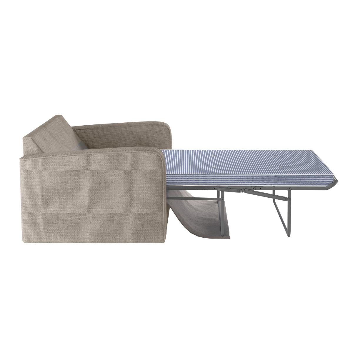 Combining comfort with modern styling, the Carson Chunky Chenille Luxury 2 Seater Sofa Bed would make a superb addition within any home. Upholstered in an undeniably soft and durable chenille fabric with foam filled and fibre wrapped seat cushions, providing blissful comfort and relaxation after a long day. Fibre filled back cushions add to this luxurious feel, along with two fibre filled scatter cushions and a sprung base that guarantee incredible support and enhanced comfort. The solid wood frame and beech wood feet provide a sturdy base for the sofa. This sofa can quickly and easily be transformed into a bed with its cosy built in mattress, perfect for you or your guests. To check out our handy sizing guide to help you find out if you’ll be able to get your new furniture into your home. Need to throw out your old sofa first? View our information on. Furniture recycling and collections.