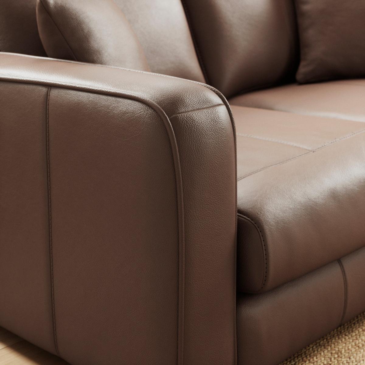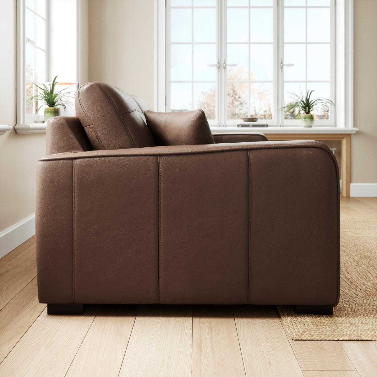 * Modern leather upholstery * Piped edge detailing * Foam filled seat * Fibre filled back cushions This sofa's plush cushions and smooth leather upholstery create an inviting space perfect for relaxation or entertaining guests. The sturdy frame ensures lasting durability, while the elegant design makes it a versatile addition to any interior.