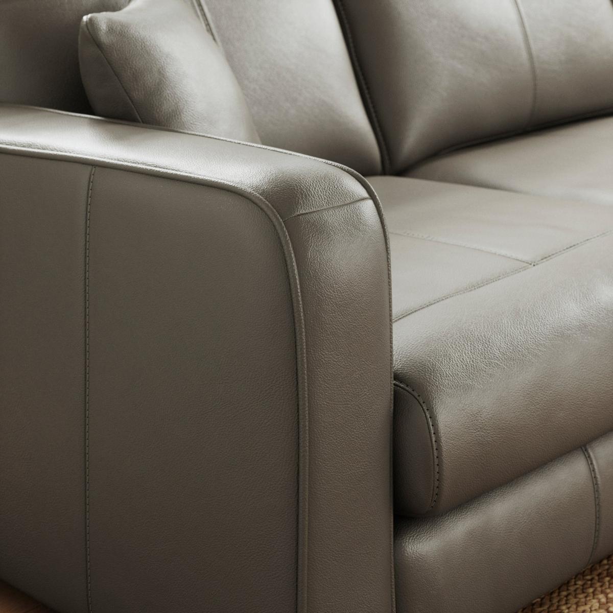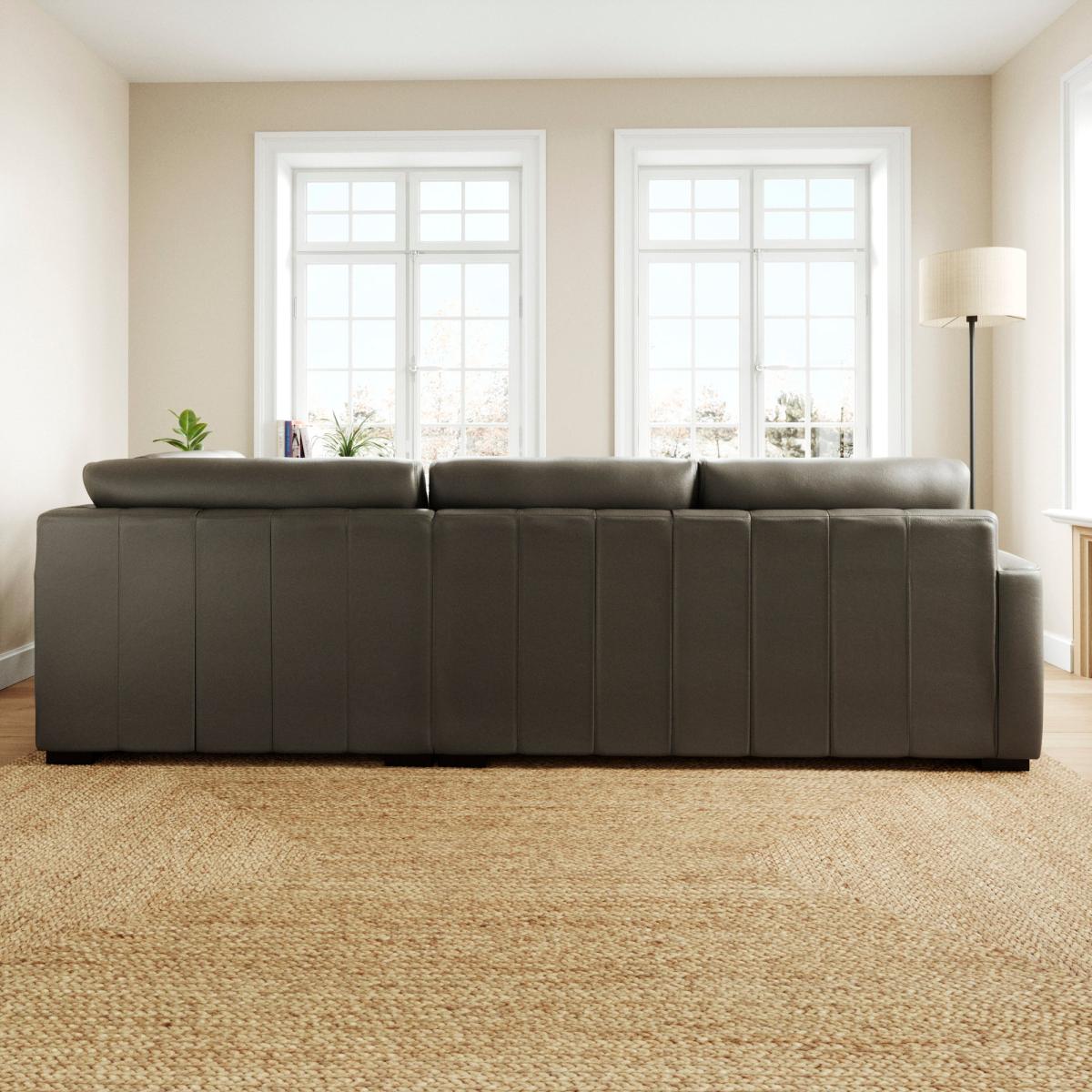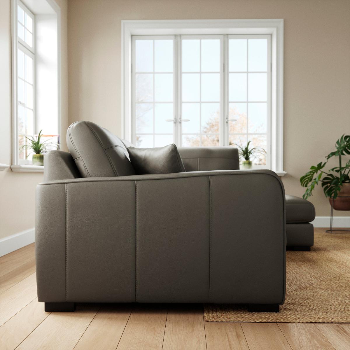 * Modern leather upholstery * Piped edge detailing * Foam filled seat * Fibre filled back cushions * Right and Left hand options This chaise's expansive design provides ample seating, making it perfect for social gatherings or peaceful lounging. The smooth leather upholstery offers a refined aesthetic, while the deep cushions and supportive structure ensure supreme comfort. Built with high-quality craftsmanship, this sofa is designed for both durability and timeless appeal.
